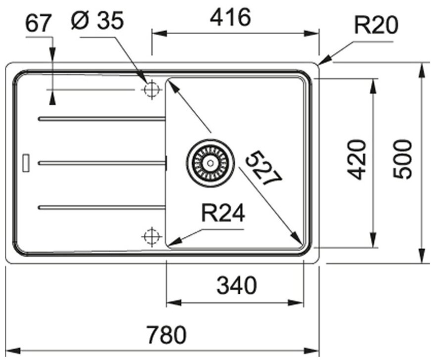 Купить Мойка кухонная Franke BFG 611C, искусственный гранит, чёрная, 62 см x 50 см x 20 см с доставкой по всей России.