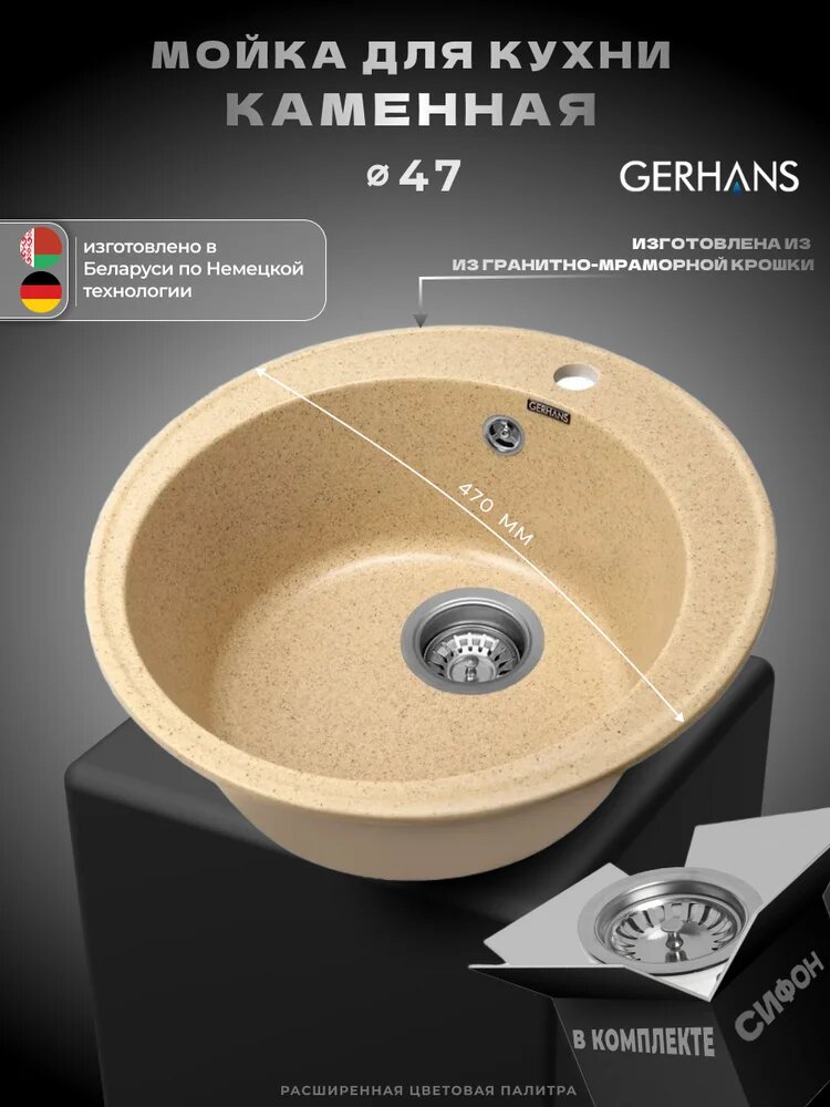 Мойка кухонная Gerhans A05-21 47×47, мойка для кухни, бежевая, круглая: сравнение цен, характеристики, фото, актуальное наличие и цены.