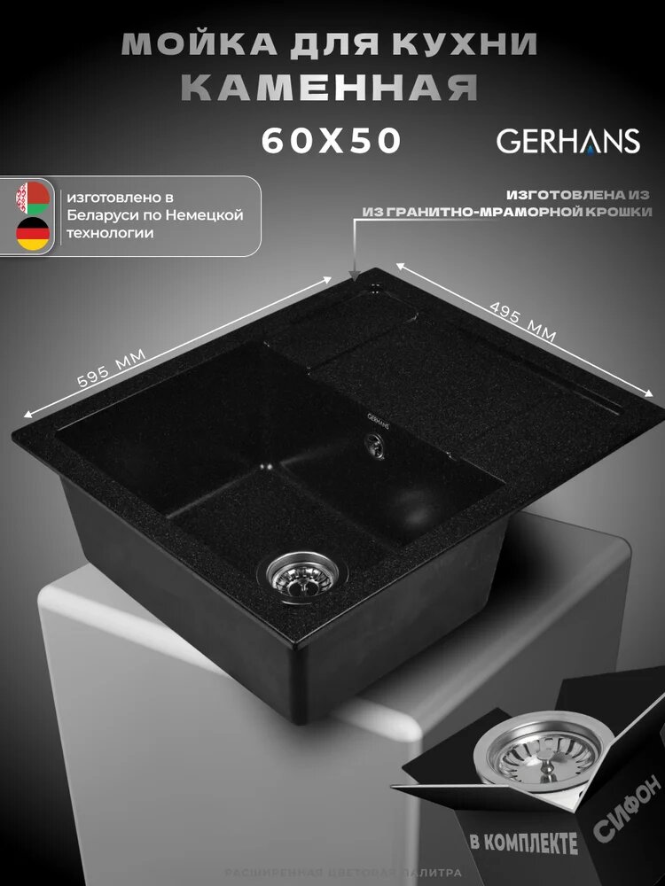 Купить Мойка кухонная Gerhans B19-22 прямоугольная, 59×49, мойка для кухни, с крылом, черная с доставкой по всей России. Мойка кухонная Gerhans B19-22 прямоугольная, 59×49, мойка для кухни, с крылом, черная: сравнение цен, характеристики, фото, актуальное наличие и цены.