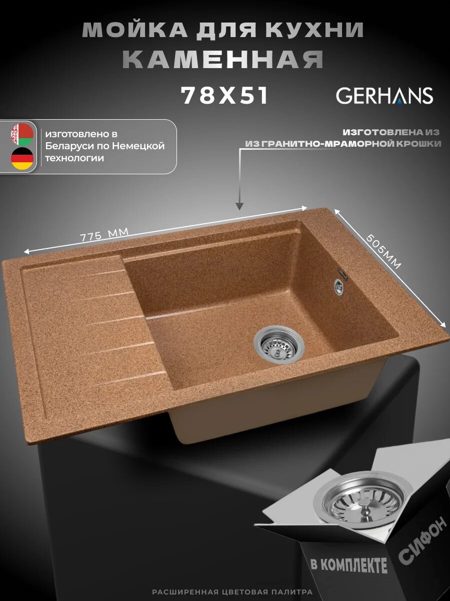Купить Мойка кухонная Gerhans B28-23 прямоугольная, 77×50, мойка для кухни, с крылом, коричневая с доставкой по всей России. Мойка кухонная Gerhans B28-23 прямоугольная, 77×50, мойка для кухни, с крылом, коричневая: сравнение цен, характеристики, фото, актуальное наличие и цены.