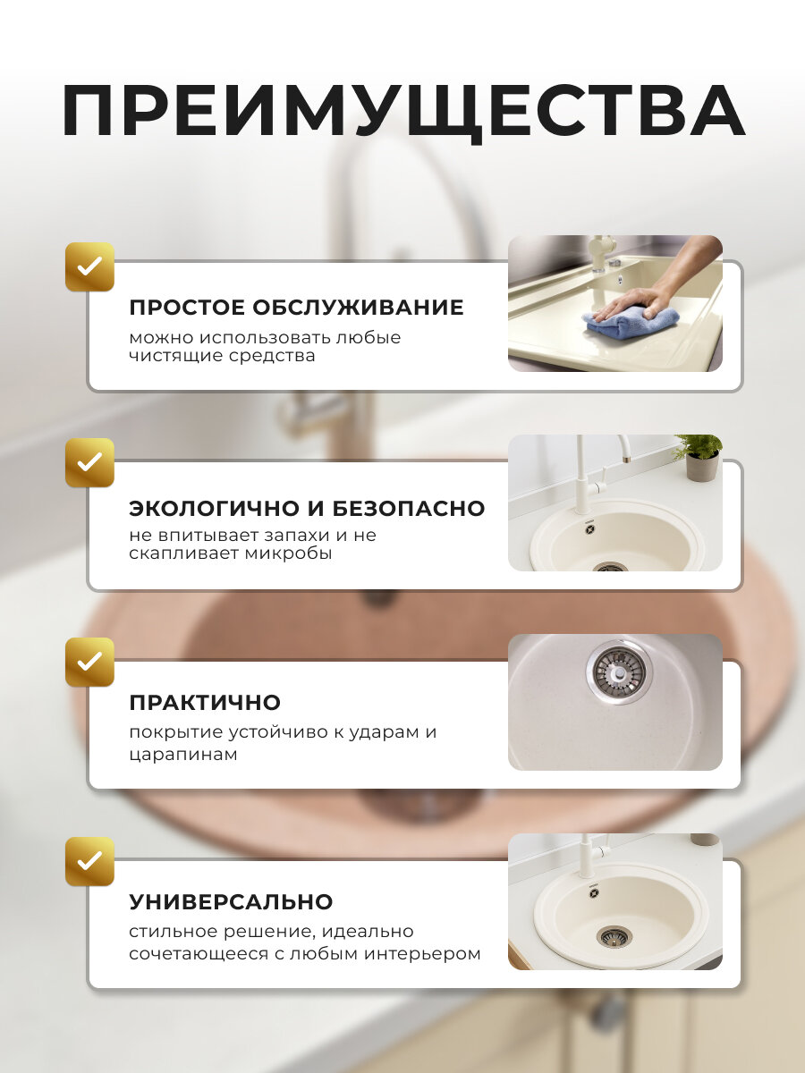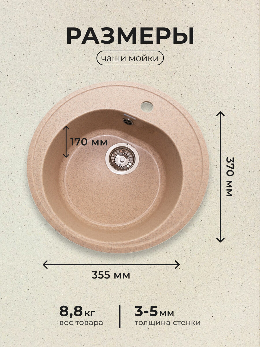 Мойка кухонная GranAlliance G-10, искусственный камень, песочная, с сифоном: сравнение цен, характеристики, фото, актуальное наличие и цены.