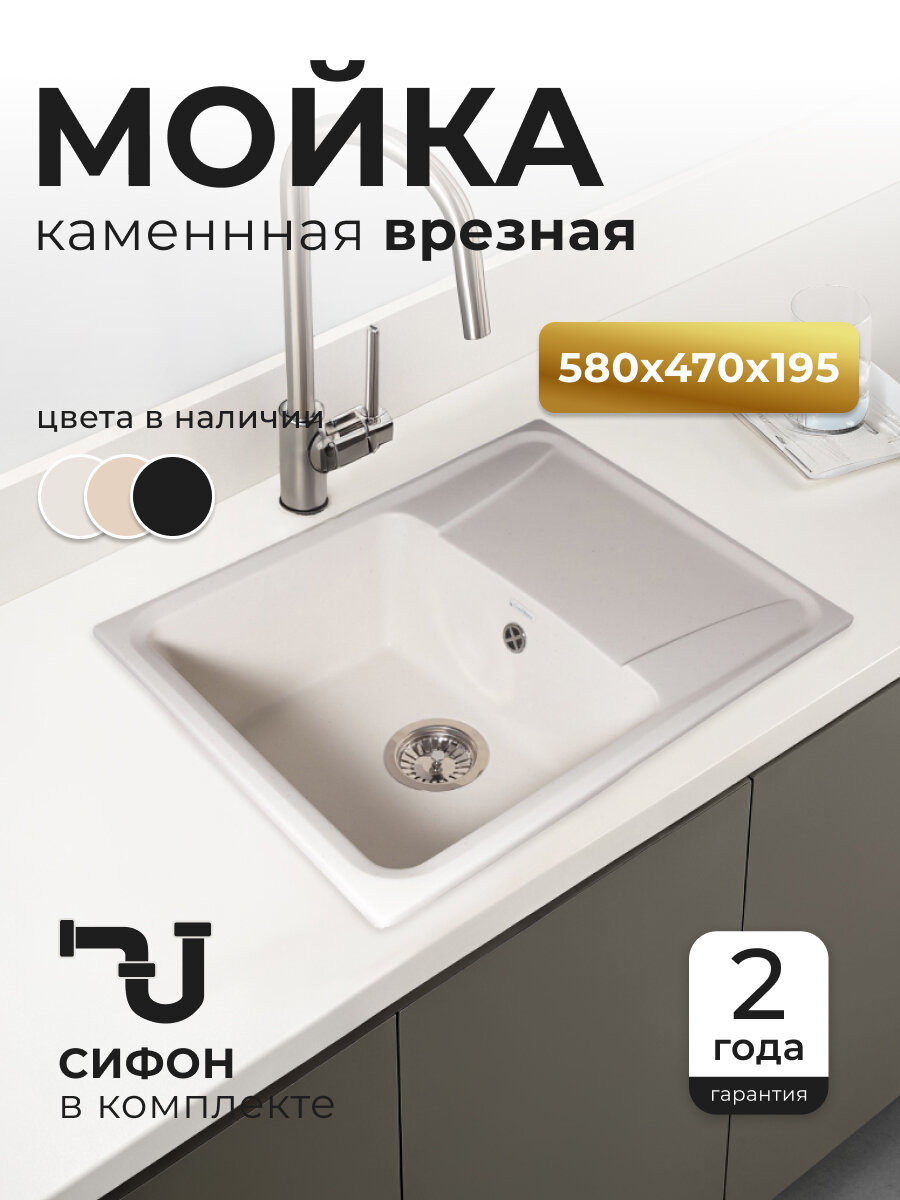 Купить Мойка кухонная GranAlliance G-22, искусственный камень, белая, с сифоном с доставкой по всей России. Мойка кухонная GranAlliance G-22, искусственный камень, белая, с сифоном: сравнение цен, характеристики, фото, актуальное наличие и цены.