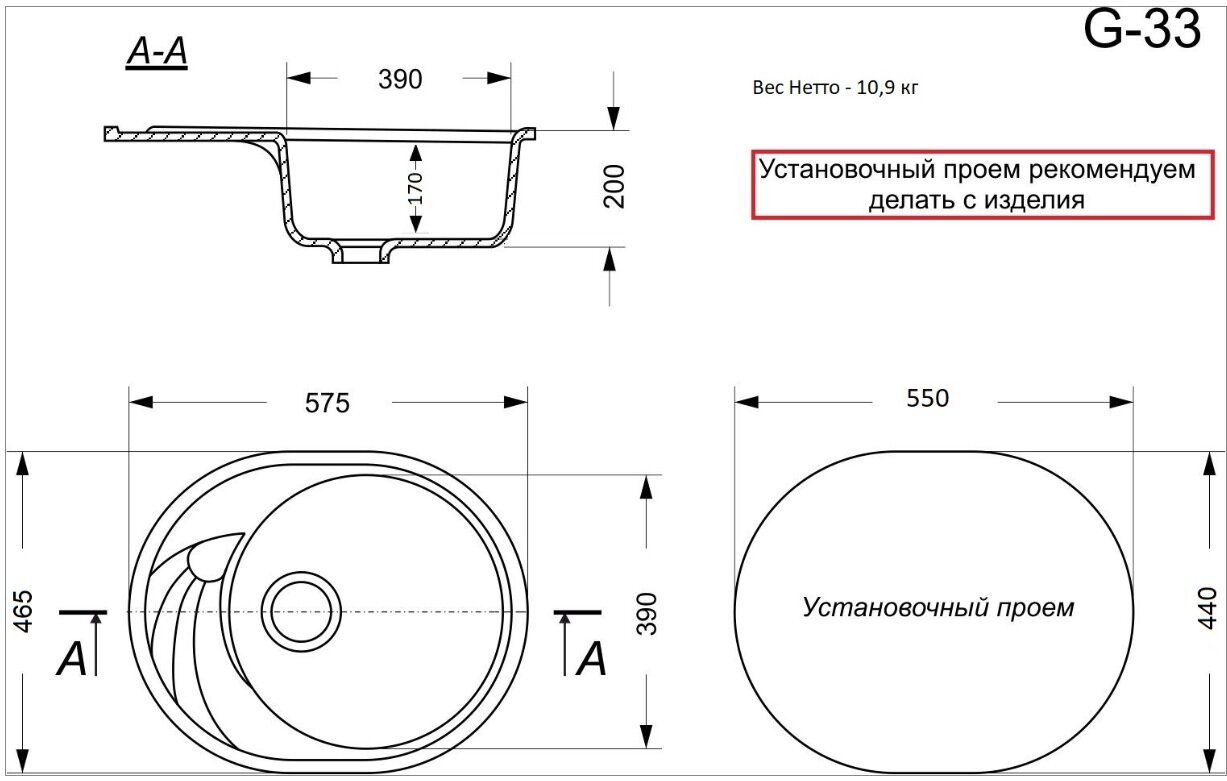 Мойка кухонная GranAlliance G-33, искусственный камень, черная, овальная, 57,5×46,5 см: сравнение цен, характеристики, фото, актуальное наличие и цены.