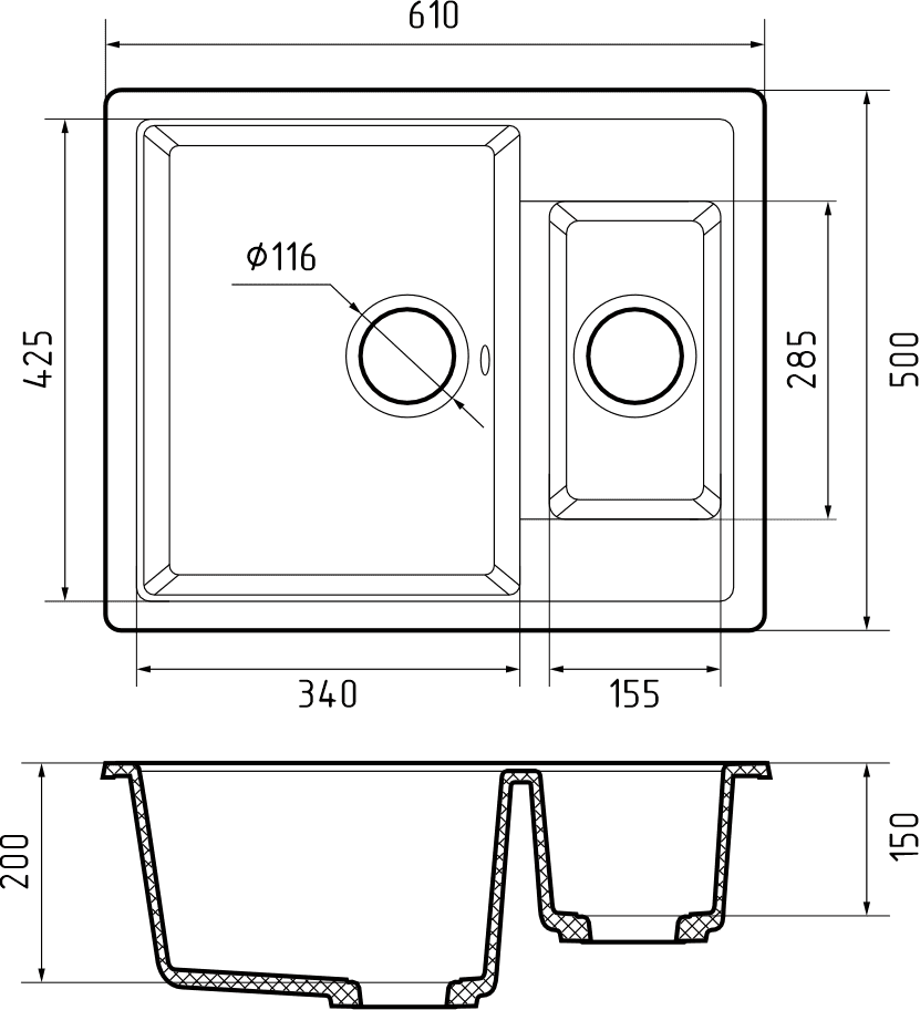 Кухонная мойка GranFest Quadro Q-610K кашемир: сравнение цен, характеристики, фото, актуальное наличие и цены.