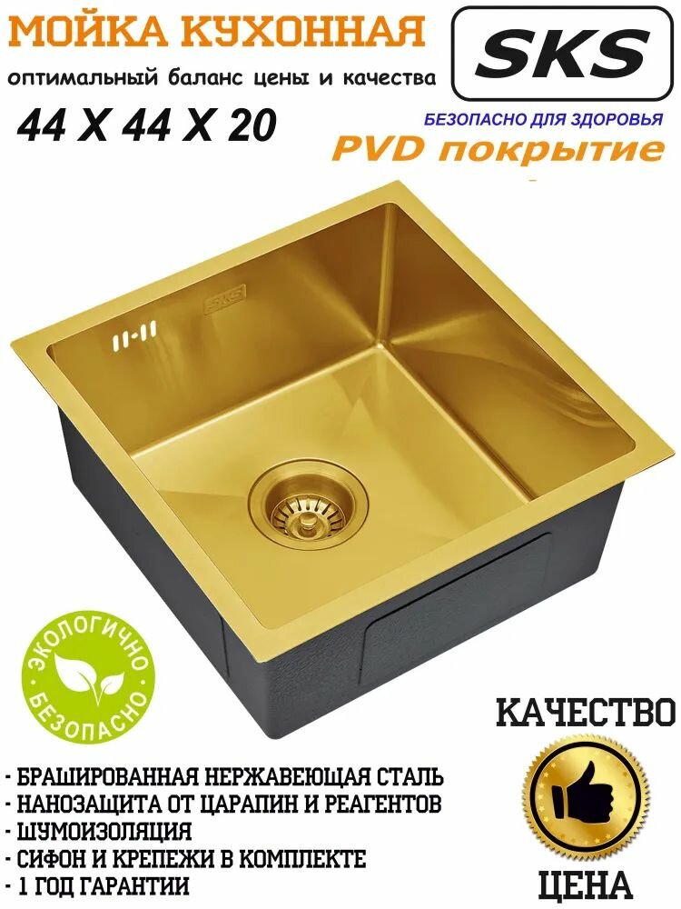 Мойка кухонная квадратная SKS 4444 BRONZE светлая бронза, цветная накладка графит: сравнение цен, характеристики, фото, актуальное наличие и цены.