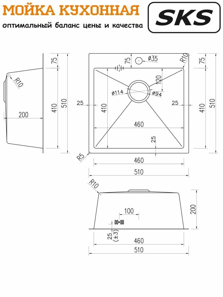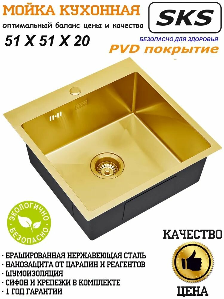 Мойка кухонная квадратная SKS 5151 BRONZE светлая бронза, цветная накладка графит: сравнение цен, характеристики, фото, актуальное наличие и цены.