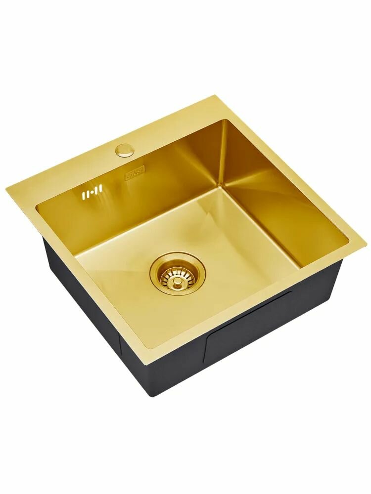 Купить Мойка кухонная квадратная SKS 5151 BRONZE светлая бронза, цветная накладка графит с доставкой по всей России.