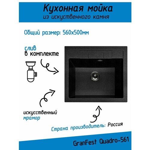 Купить Мойка кухонная мраморная GRANFEST QUADRO GF-Q561 560*500мм, врезная, цвет Черный (308)/Раковина для кухни с доставкой по всей России. Мойка кухонная мраморная GRANFEST QUADRO GF-Q561 560*500мм, врезная, цвет Черный (308)/Раковина для кухни: сравнение цен, характеристики, фото, актуальное наличие и цены.