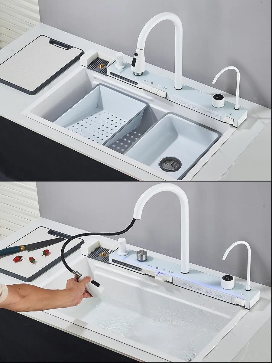 Мойка кухонная ououfaucet, нержавеющая сталь, прямоугольная, белая: сравнение цен, характеристики, фото, актуальное наличие и цены.