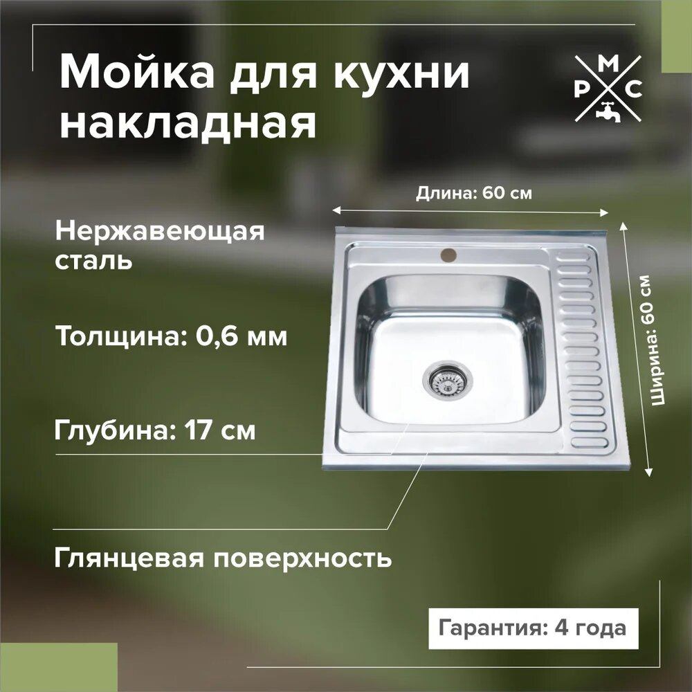 Мойка кухонная РМС MD6 MG6-6060L металлическая, 60×60, с крылом, квадратная, российская: сравнение цен, характеристики, фото, актуальное наличие и цены.