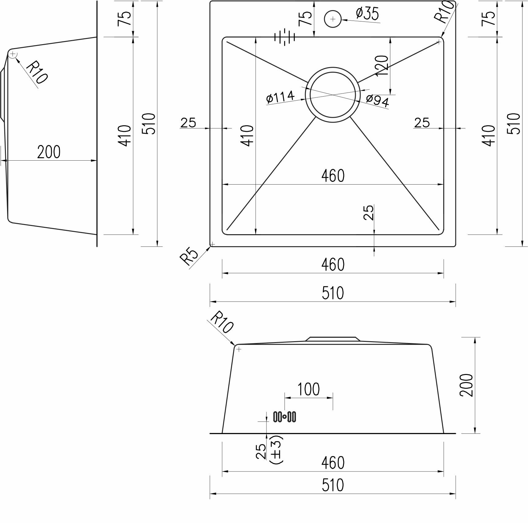 Купить Мойка кухонная SKS 5151 сатин в комплекте с накладкой на выпуск, полная шумоизоляция с доставкой по всей России.