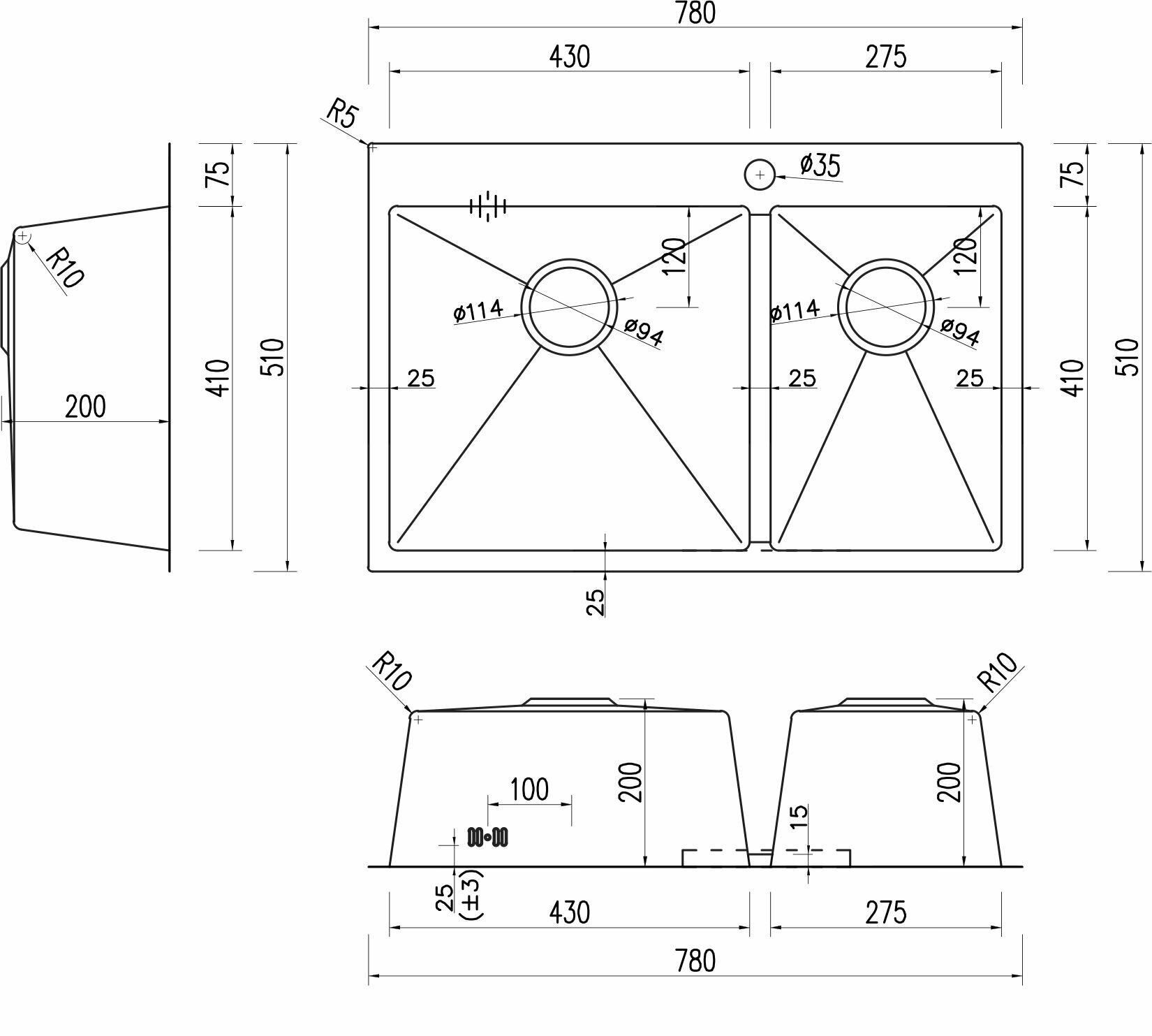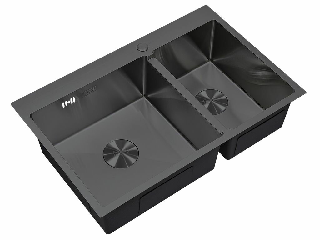 Купить Мойка кухонная SKS 78-2-51-L GRAFIT графит, в комплекте с накладкой на выпуск, полная шумоизоляция с доставкой по всей России.