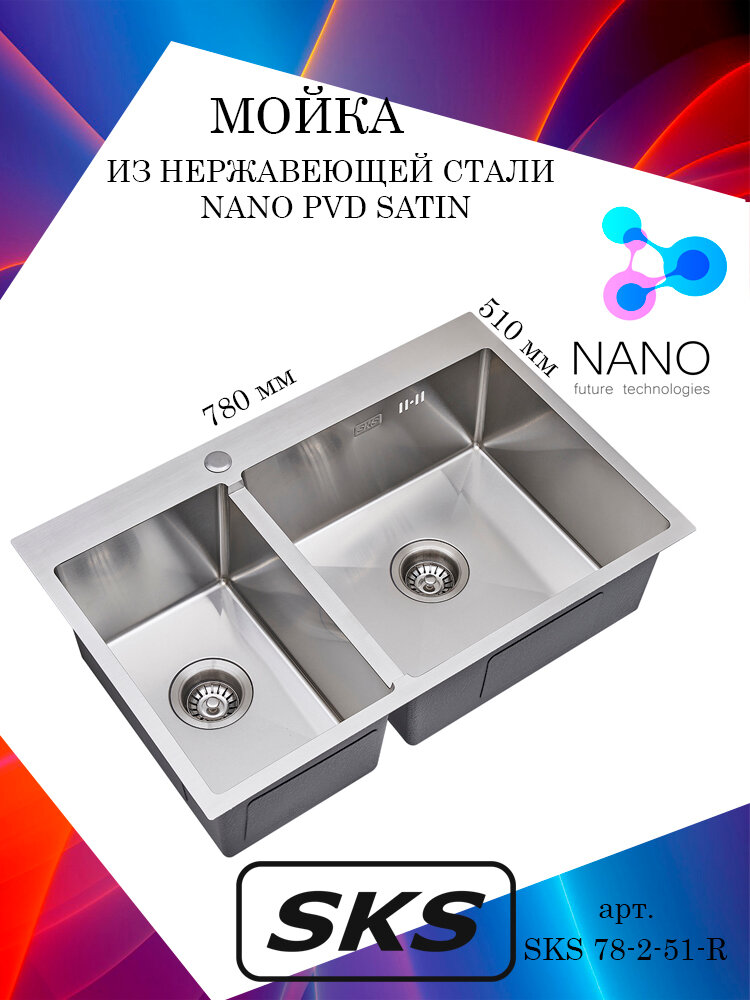 Купить Мойка кухонная SKS 78-2-51-R, сатин, две чаши, малая справа, с сифоном с доставкой по всей России. Мойка кухонная SKS 78-2-51-R, сатин, две чаши, малая справа, с сифоном: сравнение цен, характеристики, фото, актуальное наличие и цены.