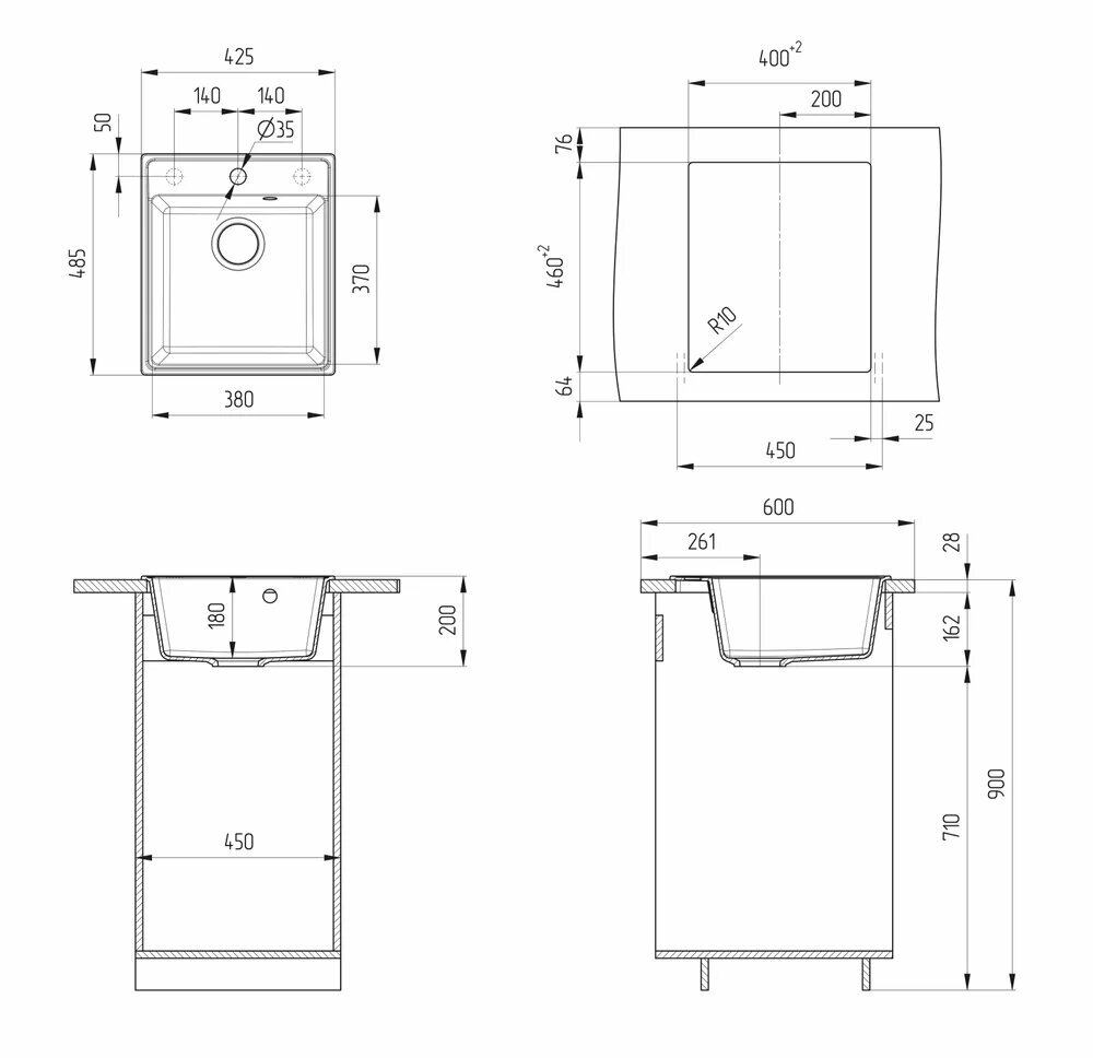 Мойка кухонная Ulgran Quartz Forte 425-03 прямоугольная, 43×48, кварцевая, бежевая, матовая, российская: сравнение цен, характеристики, фото, актуальное наличие и цены.