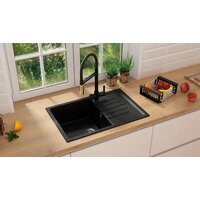 Купить Мойка кухонная Ulgran U-400 -344 прямоугольная, 50×75, с крылом, матовая, черная, российская с доставкой по всей России.