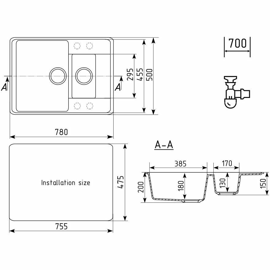 Мойка кухонная Ulgran (Улгран) из кварцевого композита прямоугольная Quartz Prima, цвет: платина, база: 75.5х47.5 см, арт. Prima 780 1,5 K-04: сравнение цен, характеристики, фото, актуальное наличие и цены.