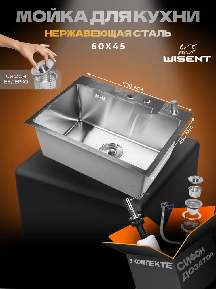 Купить Мойка кухонная Wisent 6045 с дозатором и сифоном ведерко, сатин с доставкой по всей России. Мойка кухонная Wisent 6045 с дозатором и сифоном ведерко, сатин: сравнение цен, характеристики, фото, актуальное наличие и цены.