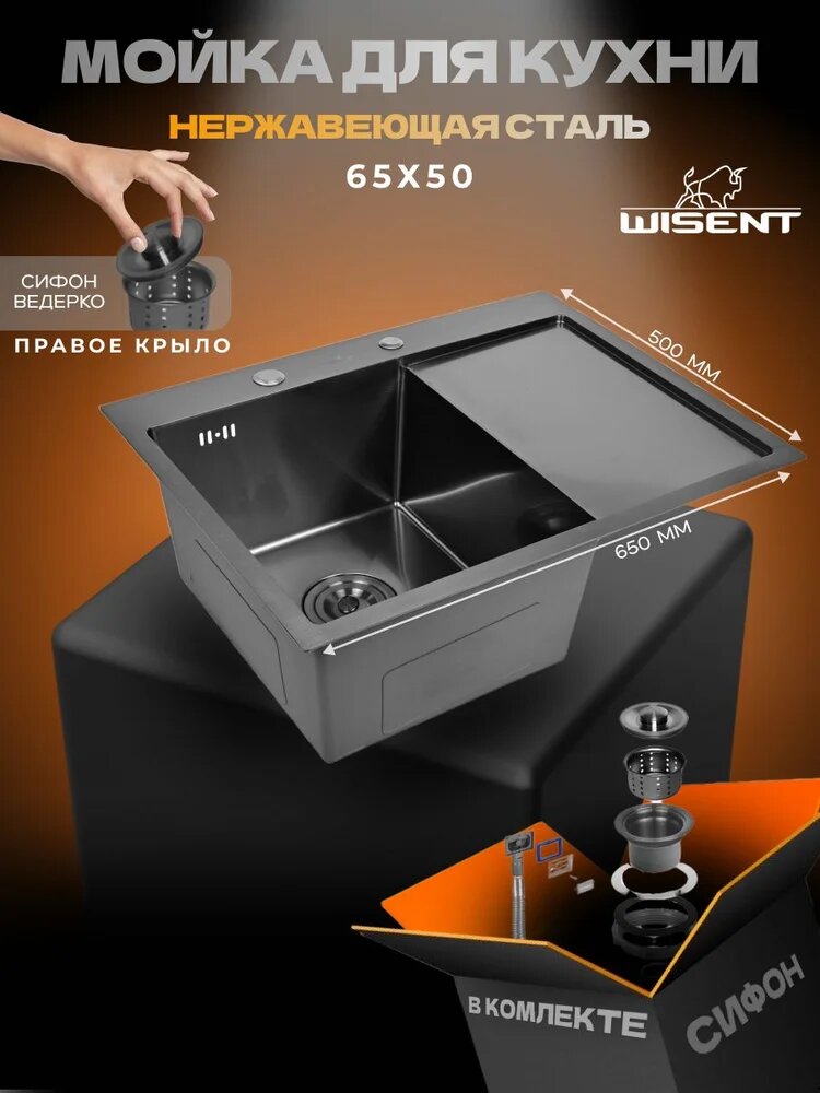 Купить Мойка кухонная Wisent WS36550B-L металлическая, прямоугольная, 65×50, мойка для кухни, с крылом, серая, матовая, врезные, черная с доставкой по всей России. Мойка кухонная Wisent WS36550B-L металлическая, прямоугольная, 65×50, мойка для кухни, с крылом, серая, матовая, врезные, черная: сравнение цен, характеристики, фото, актуальное наличие и цены.