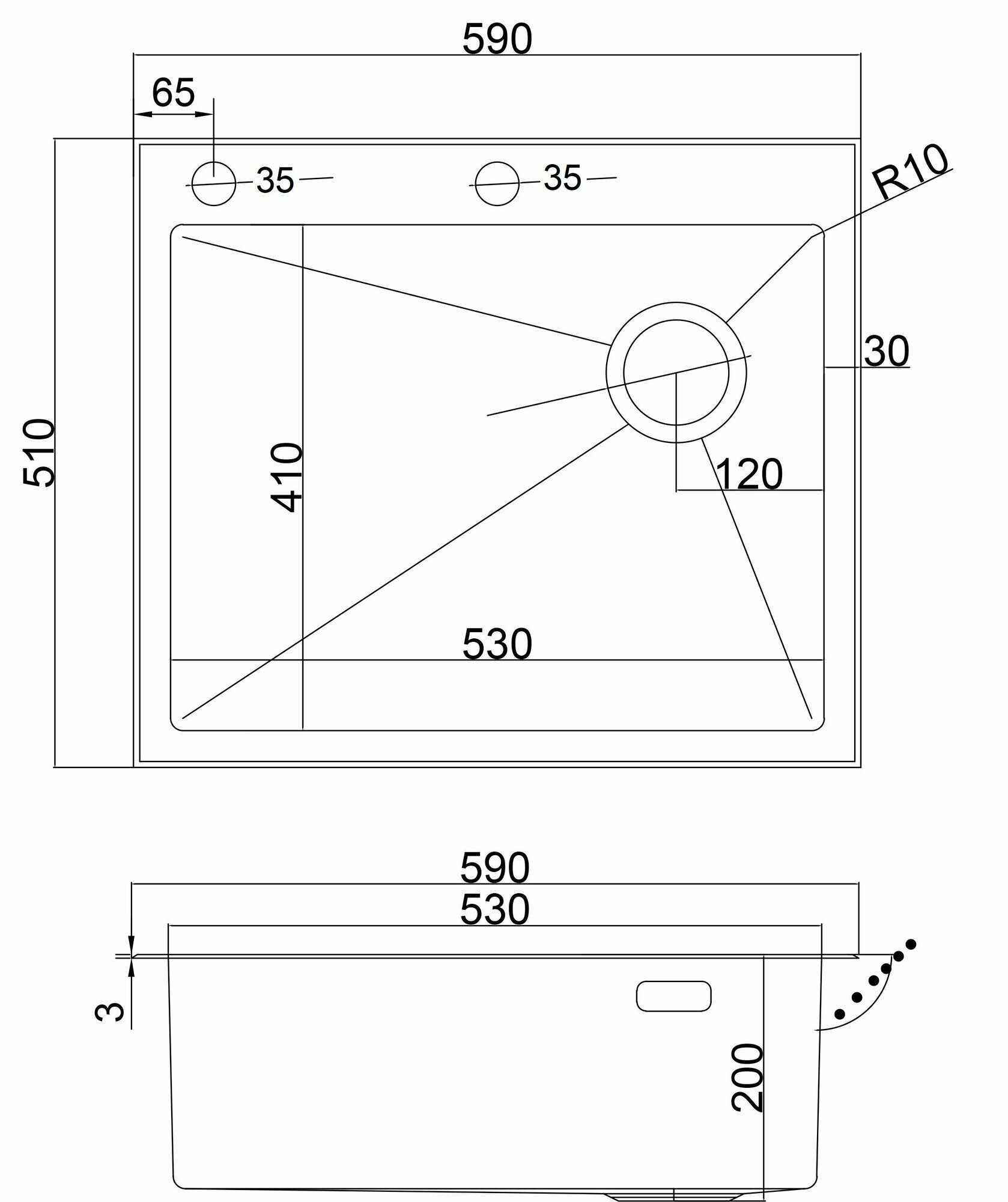 Аустенитная высоколегированная хромоникелевая нержавеющая сталь марки AISI-304 (SUS-304, 08Х18Н10). Верхняя платформа выполнена из нержавеющей стали толщиной 3 мм, что позволяет мойке идеально ложиться на поверхность столешницы. Появляется возможность устойчиво размещать на данной платформе тяжелые высокие смесители, без дополнительных приспособлений. Чаша мойки выполнена из нержавеющей стали толщиной 1,2 мм для лучшей шумоизоляции за счет снижения вибрации чаши. Для моек с платформами под смеситель - два отверстия диаметром 35mm под смеситель, дозатор или кнопку измельчителя. Увеличенная глубина раковины - 200mm. В глубокой раковине удобнее мыть посуду, вода не будет разбрызгиваться вокруг, а будет удерживаться бортиками внутри. Скругленные внутренние углы делают уход за раковиной более тщательным и простым, так как их легче чистить. В таких углах не скапливаются вредные бактерии. Небольшой уклон стенок раковины для лучшего стекания воды. Звукопоглощающее напыление с обратной стороны раковины. Дизайнерский перелив с логотипом, предотвращающий затопление в случае невыключенного крана.