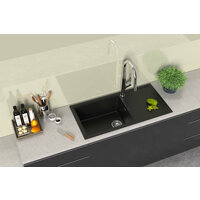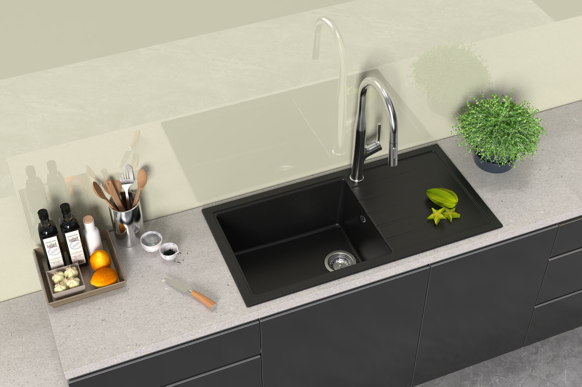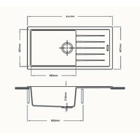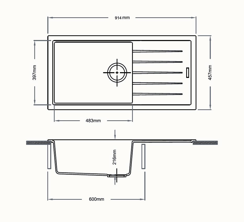 Материал: гранит LONSTONE; Вариант установки: врезной; Форма: прямоугольная; Размер мойки: 914х457 мм; Количество чаш: 1; Размер чаши: 483х397 мм; Глубина чаши: 216 мм; Размер выпуска: 3 1/2"; Перелив для воды: в чаше; Цвет: Onyx