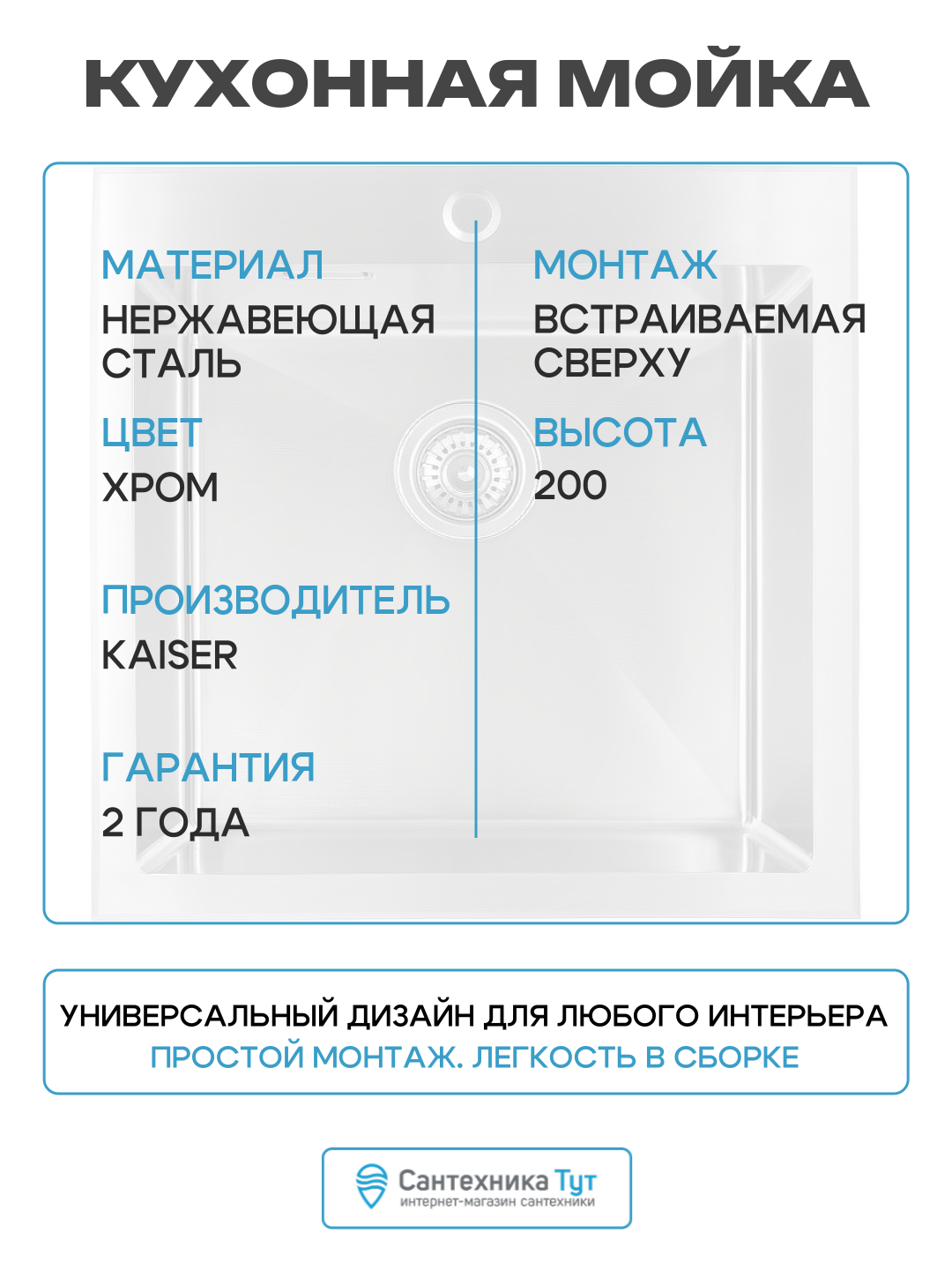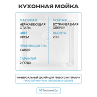 Купить Кухонная мойка Kaiser KSM-5151 Silver нержавеющая сталь встраиваемый 51 с доставкой по всей России.