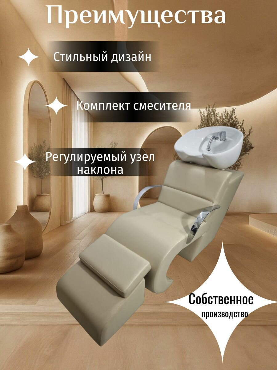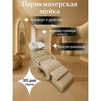 Купить Мойка парикмахерская для салона красоты Кресло бежевое Раковина белая глубокая с доставкой по всей России.