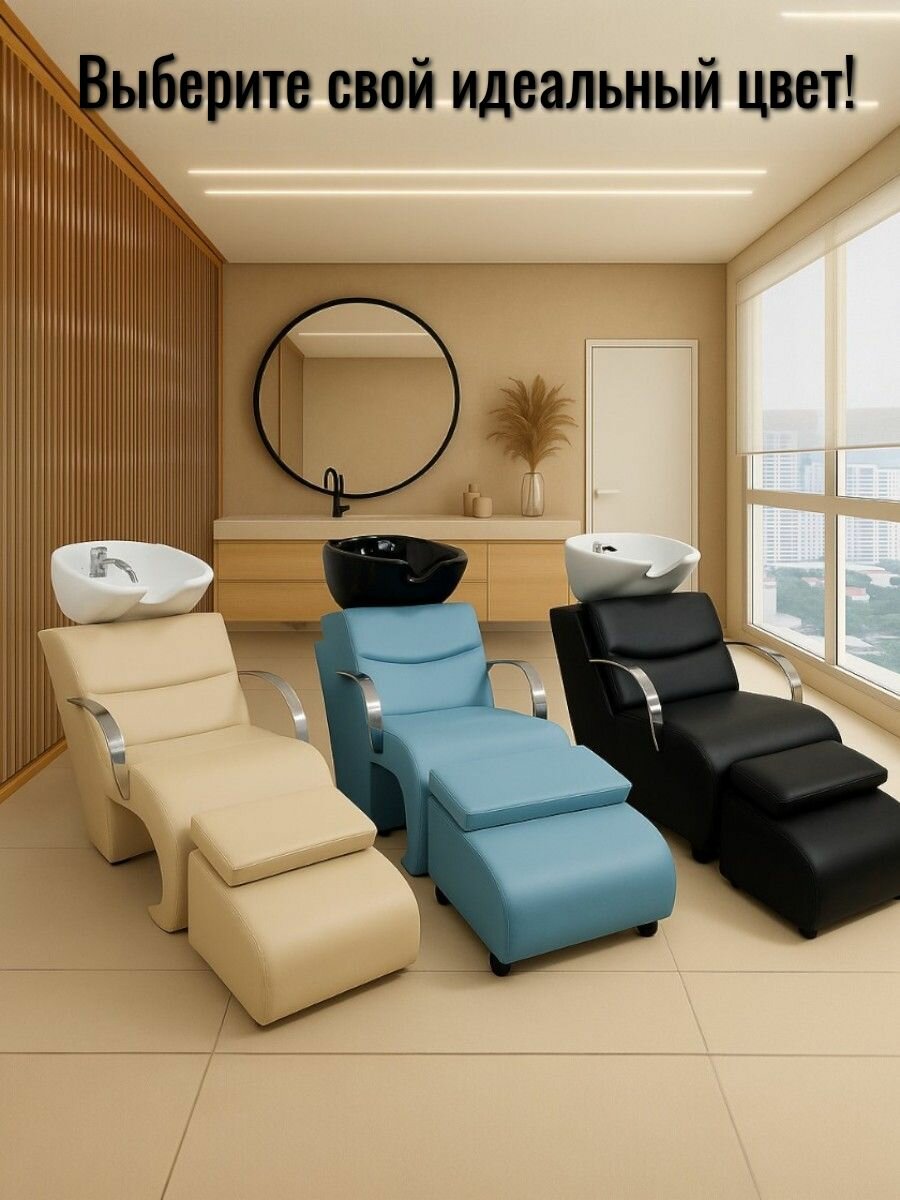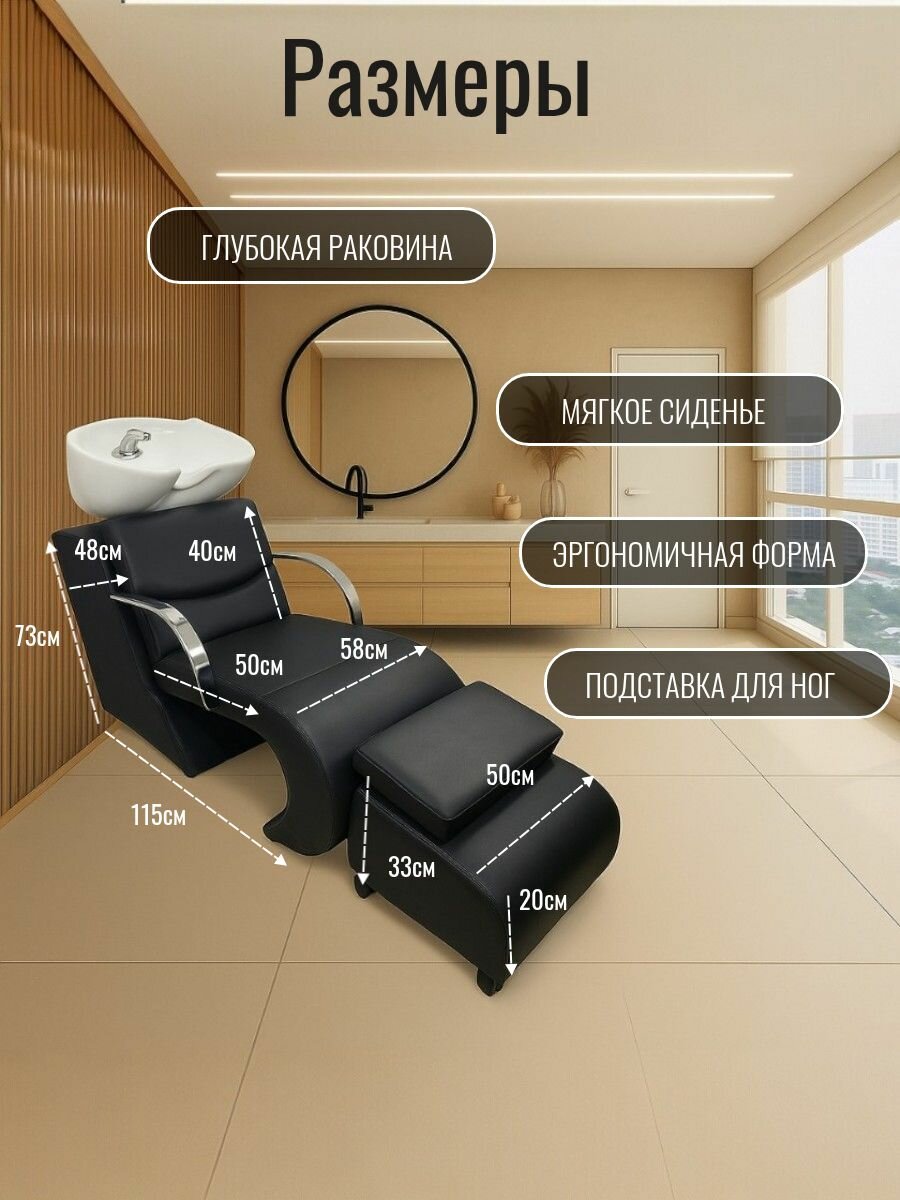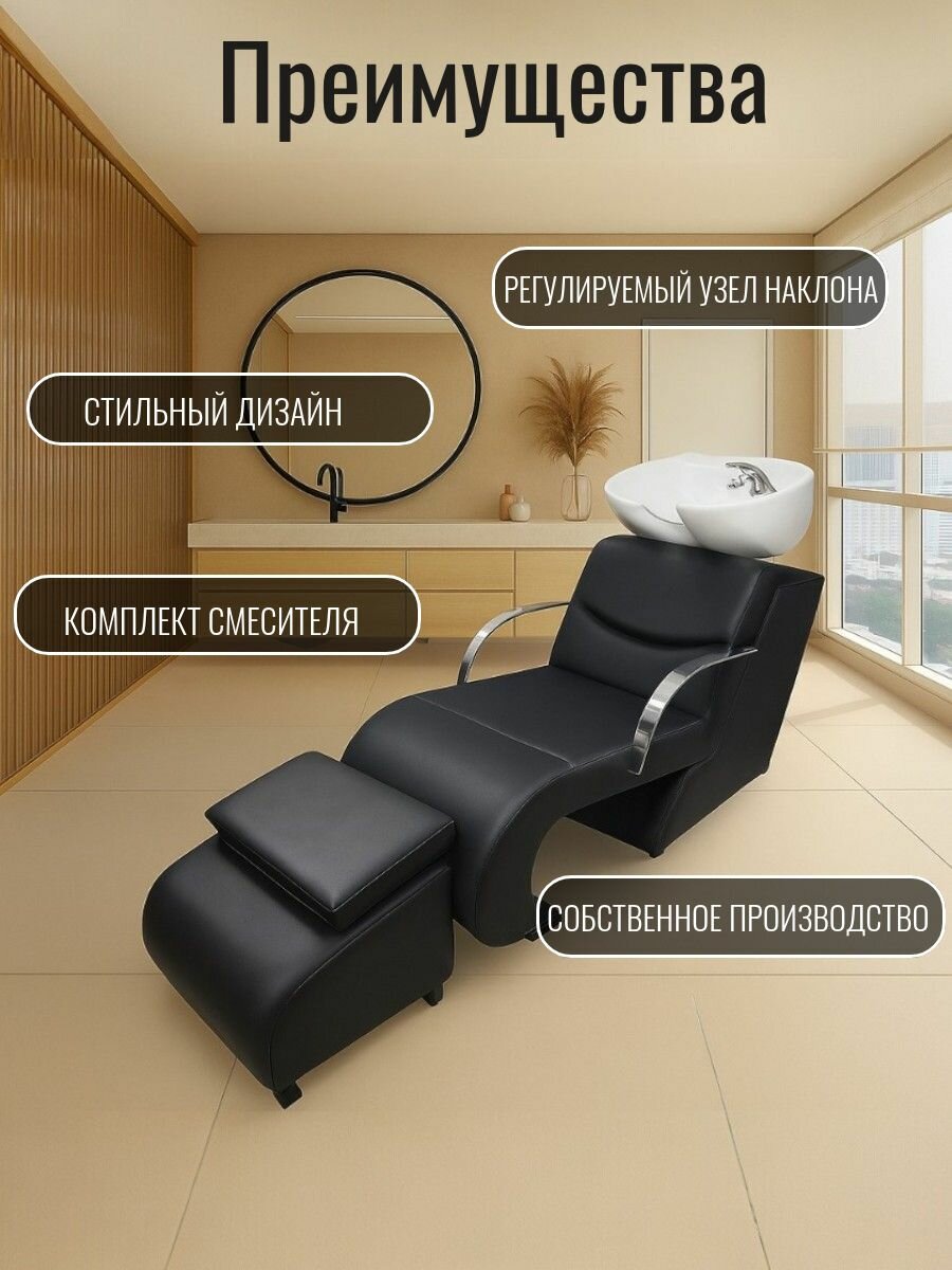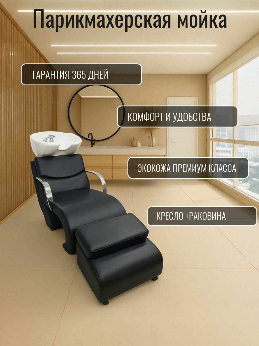 Купить Мойка парикмахерская для салона красоты Кресло черное Раковина белая глубокая с доставкой по всей России.