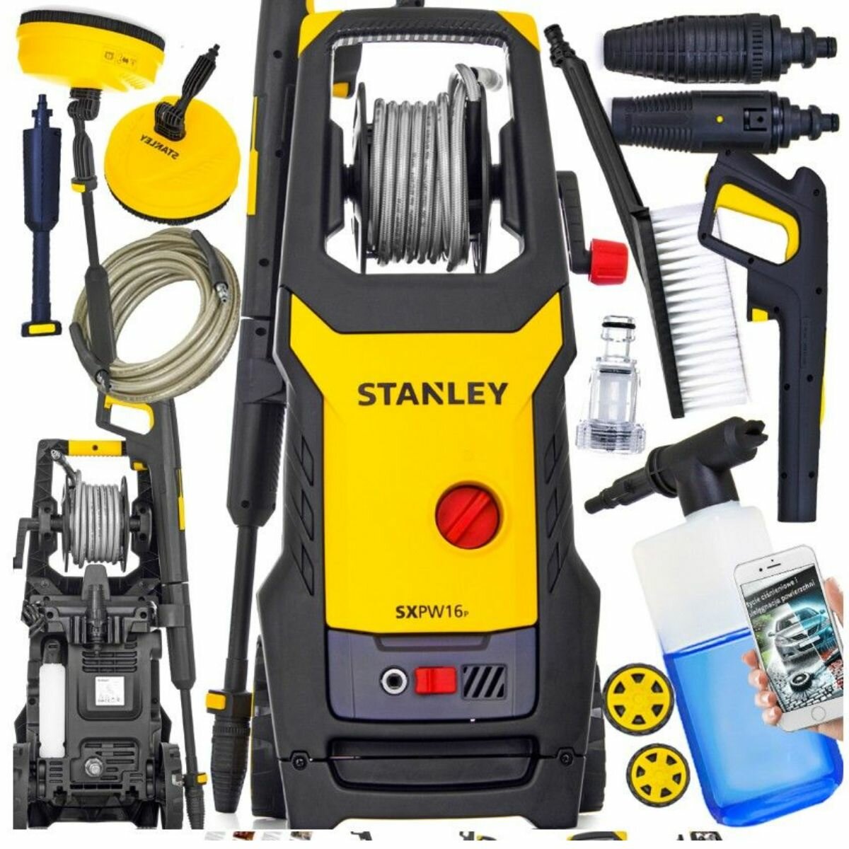 Мойка высокого давления Stanley SXPW16 PE Пистолет давления Копье под давлением, Турбо сопло Регулируемое сопло Бак для моющего средства-пенообразователь Усиленный напорный шланг 6 м Втягивающее устройство для напорного шланга Внешний фильтр Щетка для брусчатки-патио Щетка для обода