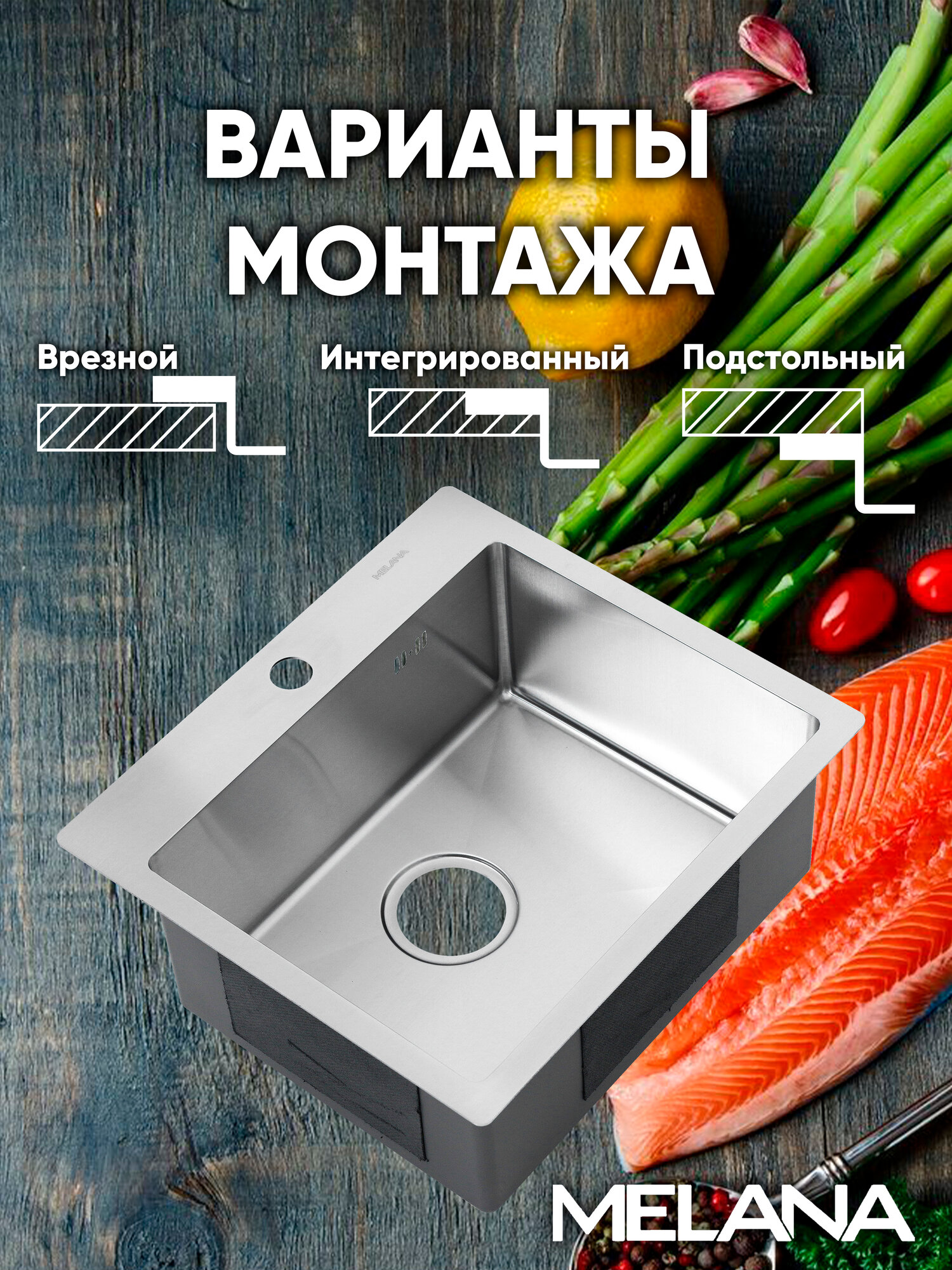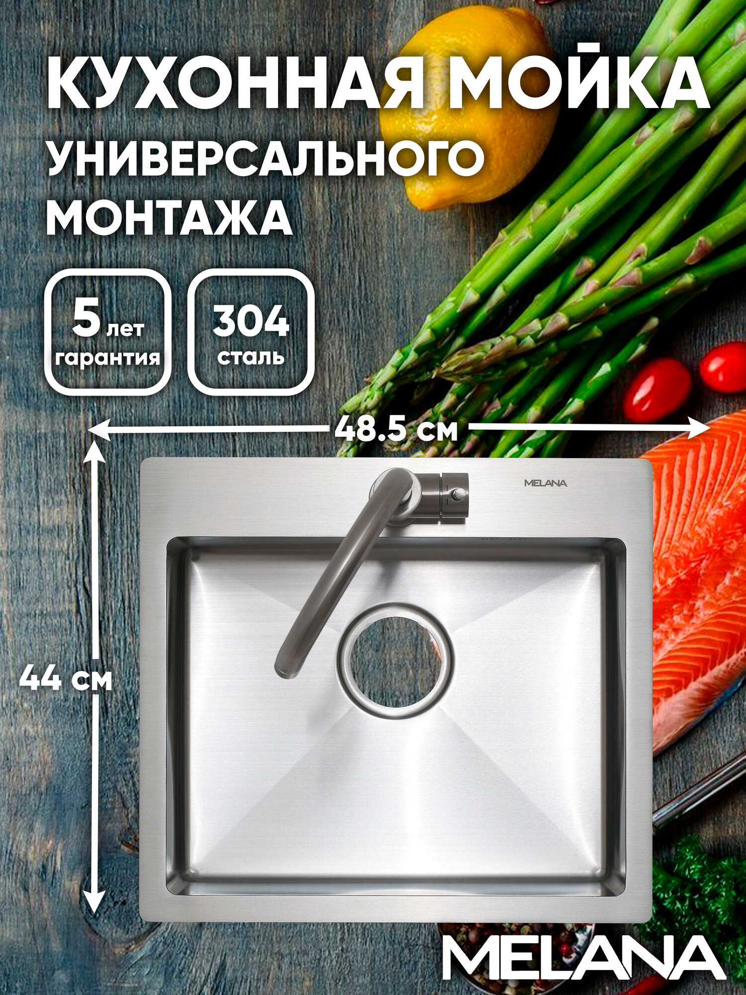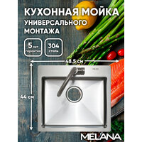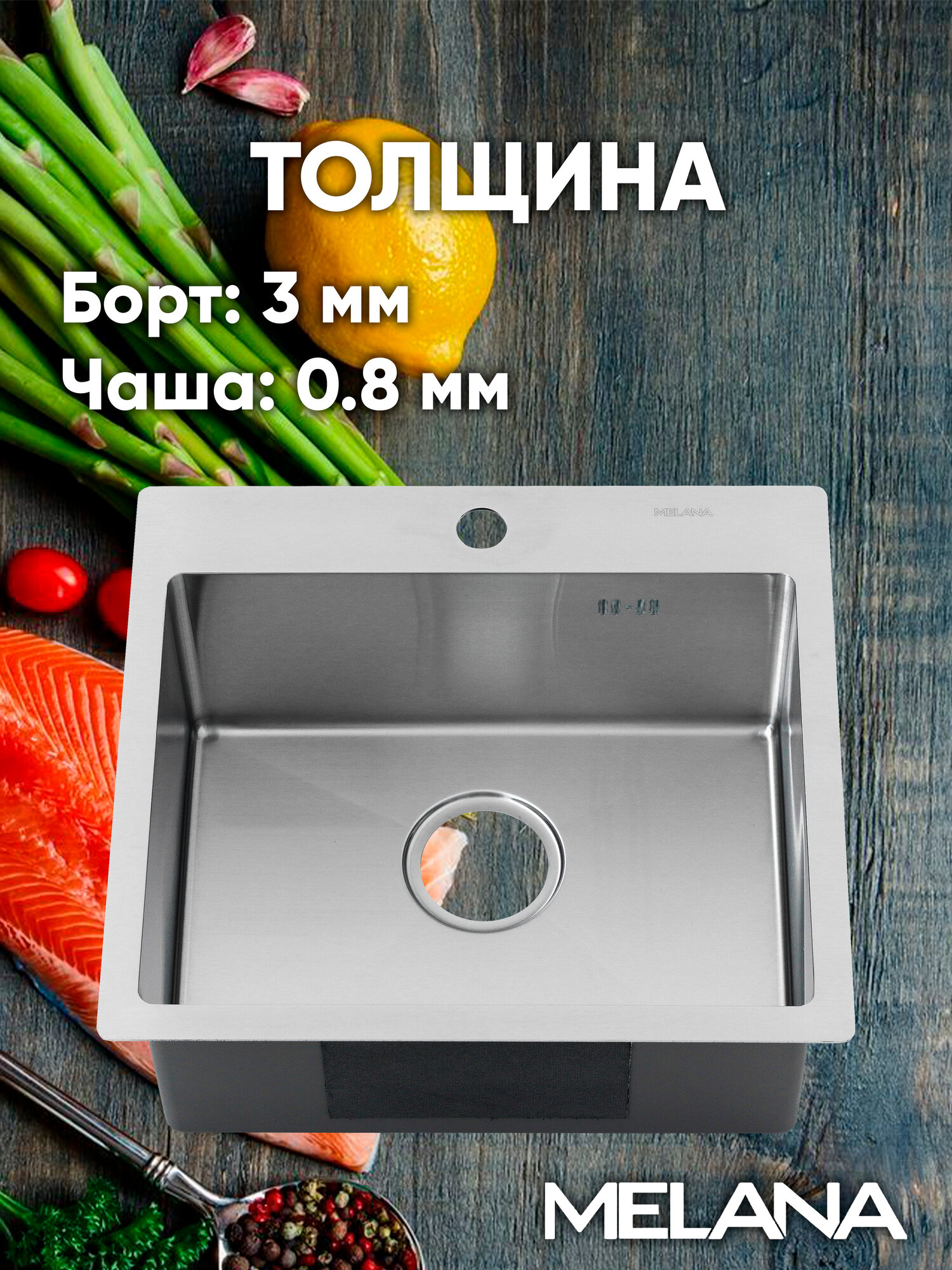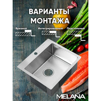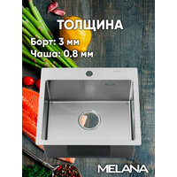 Кухонная мойка с небольшой платформой для смесителя и моющих средств компактно впишется в интерьер современной кухни. Глубокая вместительная чаша справится с большим объемом посуды. Сталь AISI304 - устойчива к высоким температурам, легко выдержит горячие сковороды и кастрюли. Мойка практична и гигиенична. Поддерживать ее чистоту проще, благодаря скругленным внутренним углам и конструкции дна с небольшим уклоном, который не позволяет воде застаиваться в чаше. Широкий диаметр слива препятствует возникновению засоров, а наличие отверстия для перелива делает использование мойки более безопасным. Снижение шума от воды при эксплуатации мойки обеспечивают изоляционный слой и накладки на обратной стороне мойки. Благодаря им, использование мойки становится тихим и комфортным. Базовым способом монтажа для мойки является установка сверху в вырезанное в столешнице отверстие. Толщина стали: 3 мм - борт, 0,8 мм - чаша.