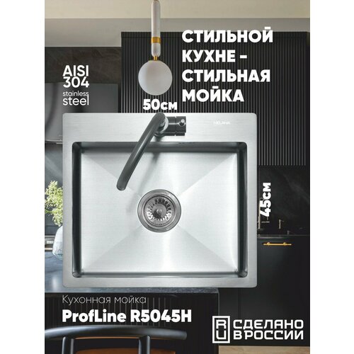 Кухонная мойка с небольшой платформой для смесителя и моющих средств компактно впишется в интерьер современной кухни. Глубокая вместительная чаша справится с большим объемом посуды. Сталь AISI304 - устойчива к высоким температурам, легко выдержит горячие сковороды и кастрюли. Мойка практична и гигиенична. Поддерживать ее чистоту проще, благодаря скругленным внутренним углам и конструкции дна с небольшим уклоном, который не позволяет воде застаиваться в чаше. Широкий диаметр слива препятствует возникновению засоров, а наличие отверстия для перелива делает использование мойки более безопасным. Снижение шума от воды при эксплуатации мойки обеспечивают изоляционный слой и накладки на обратной стороне мойки. Благодаря им, использование мойки становится тихим и комфортным. Базовым способом монтажа для мойки является установка сверху в вырезанное в столешнице отверстие. Толщина стали: 3 мм - борт, 0,8 мм - чаша.