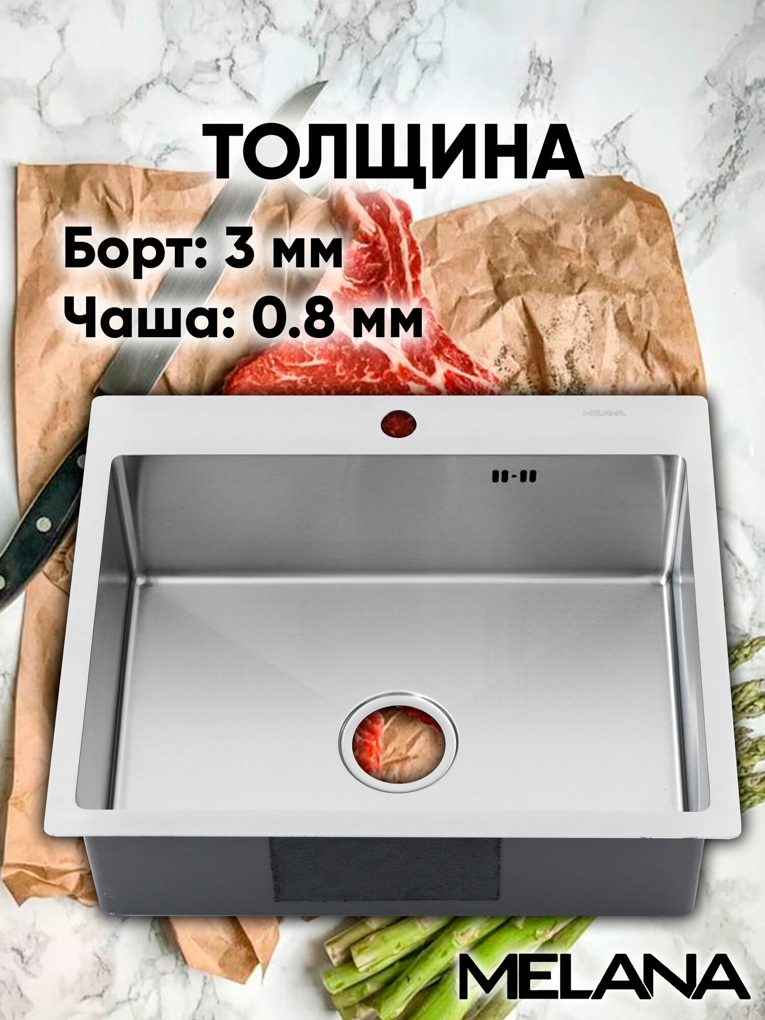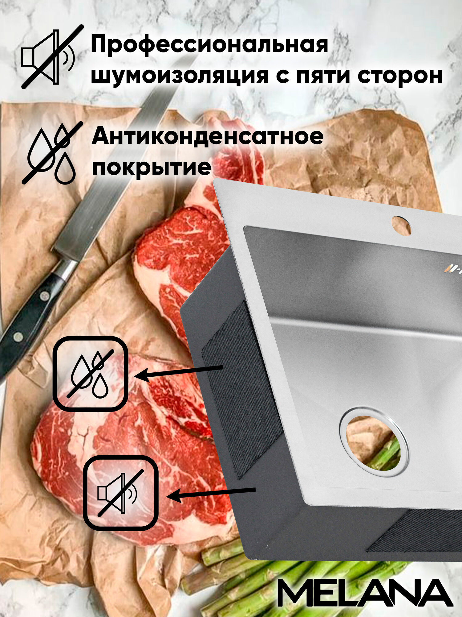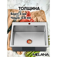 Кухонная мойка с небольшой платформой для смесителя и моющих средств компактно впишется в интерьер современной кухни. Глубокая вместительная чаша справится с большим объемом посуды. Сталь AISI304 - устойчива к высоким температурам, легко выдержит горячие сковороды и кастрюли. Мойка практична и гигиенична. Поддерживать ее чистоту проще, благодаря скругленным внутренним углам и конструкции дна с небольшим уклоном, который не позволяет воде застаиваться в чаше. Широкий диаметр слива препятствует возникновению засоров, а наличие отверстия для перелива делает использование мойки более безопасным. Снижение шума от воды при эксплуатации мойки обеспечивают изоляционный слой и накладки на обратной стороне мойки. Благодаря им, использование мойки становится тихим и комфортным. Базовым способом монтажа для мойки является установка сверху в вырезанное в столешнице отверстие. Толщина стали: 3 мм - борт, 0,8 мм - чаша.
