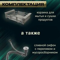 PVD покрытие, дозатор для мыла, коландер, корзина для посуды, отверстие под кран-фильтр, отверстие под смеситель, сливная арматура