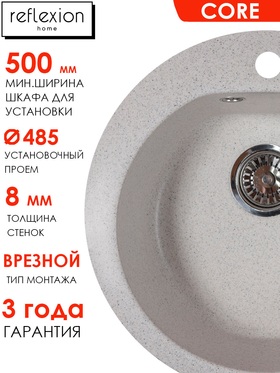 Кухонная мойка круглая 505х190мм Reflection Core RX1350TN, олово