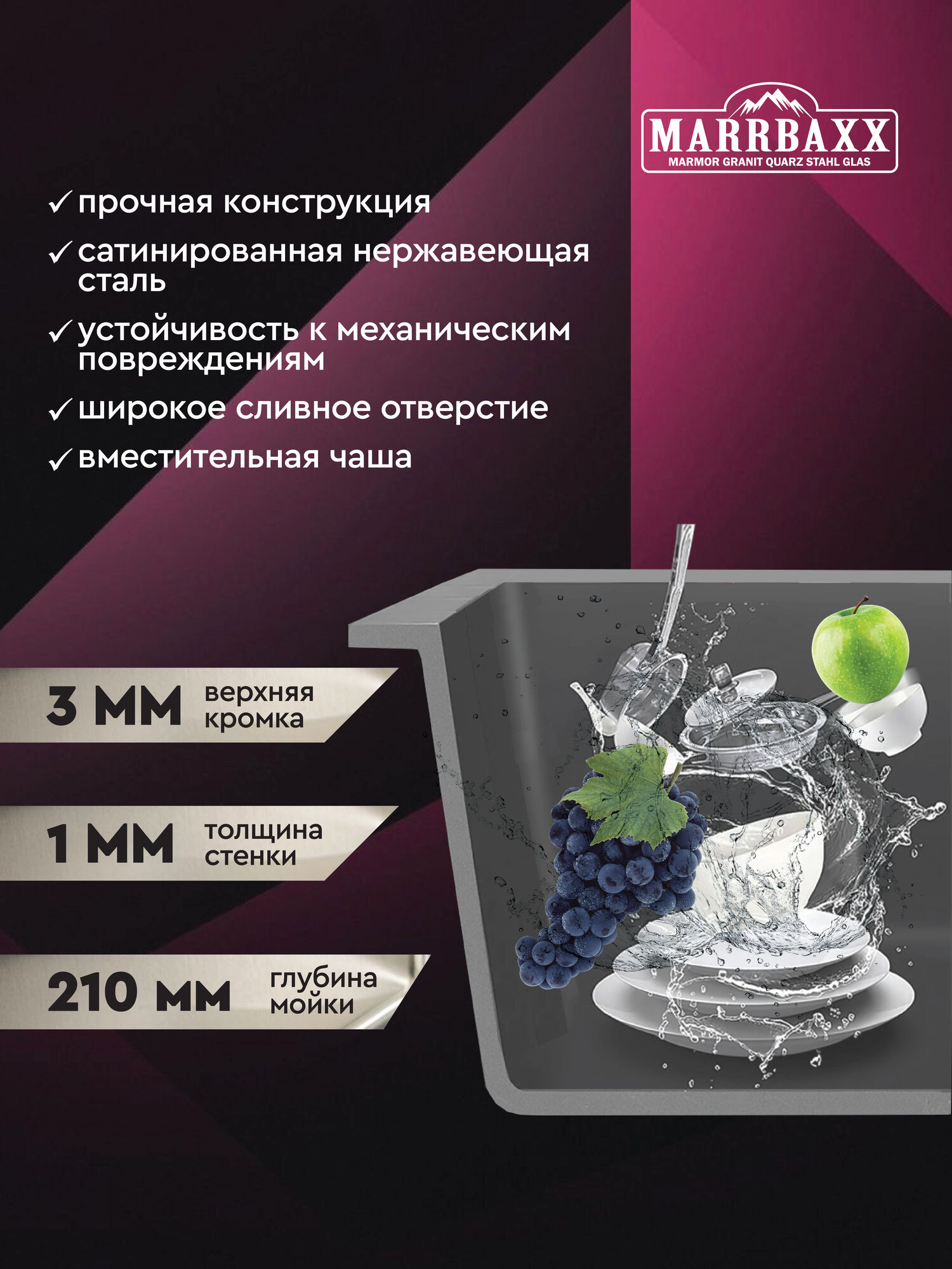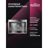 Мойка для кухни из нержавеющей стали 60 х 45, с сифоном и решеткой для овощей, «MARRBAXX», квадратный слив, сатиновая: сравнение цен, характеристики, фото, актуальное наличие и цены.