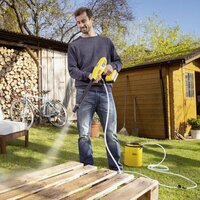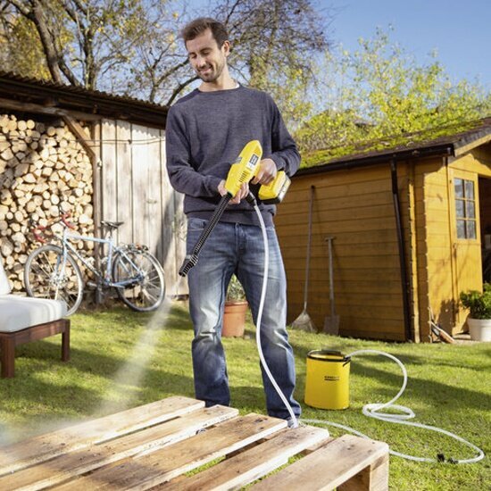 Мойка среднего давления KARCHER KHB 4-18 Battery Set (с аккумулятором в комплекте)Kärcher предлагает решение для легкой и быстрой уборки: удобный компактный аппарат среднего давления, не требующий долгого времени для подготовки к работе. Веерное сопло позволяет бережно очищать с его помощью садовую мебель, игрушки, мусорные контейнеры и многие другие поверхности и предметы, а широкий выбор опциональных принадлежностей (насадка для пенной чистки, моечная щетка, всасывающий шланг, насадка «5 в 1» и т. д.) – решать и целый ряд других задач. В комплект поставки входят 18-вольтный сменный аккумулятор и зарядное устройство. особенности И преимущества: Сменный аккумулятор Kärcher Battery Power 18 ВБолее эффективное и оптимально настроенное среднее давлениеЛегкая и компактная конструкцияАксессуары для широкого спектра примененийТехнические характеристики: Аккумуляторная платформа18 В аккумуляторная платформаДавление (бар)21Диапазон давленийСреднее давлениеТемпература воды на входе (°C)макс. 40Производительность (л/ч)макс. 170Тип аккумулятораЛитий-ионный сменный аккумуляторНапряжение (В)18Емкость (Ач)2,5Время работы от 1 заряда (мин)14 (2,5 Ач)Масса (без принадлежностей) (кг)1,3Масса (с упаковкой) (кг)2,762Размеры (Д × Ш × В) (мм)292 x 89 x 228