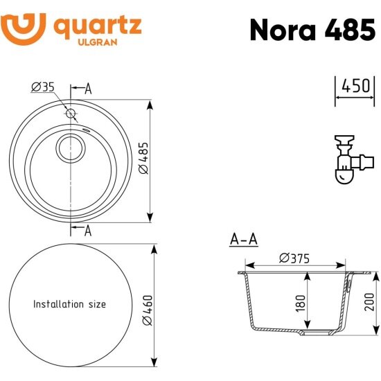 Мойка кухонная Ulgran Quartz Nora, кварцевый композит, круглая, цвет бетон, 48,5 см: сравнение цен, характеристики, фото, актуальное наличие и цены.