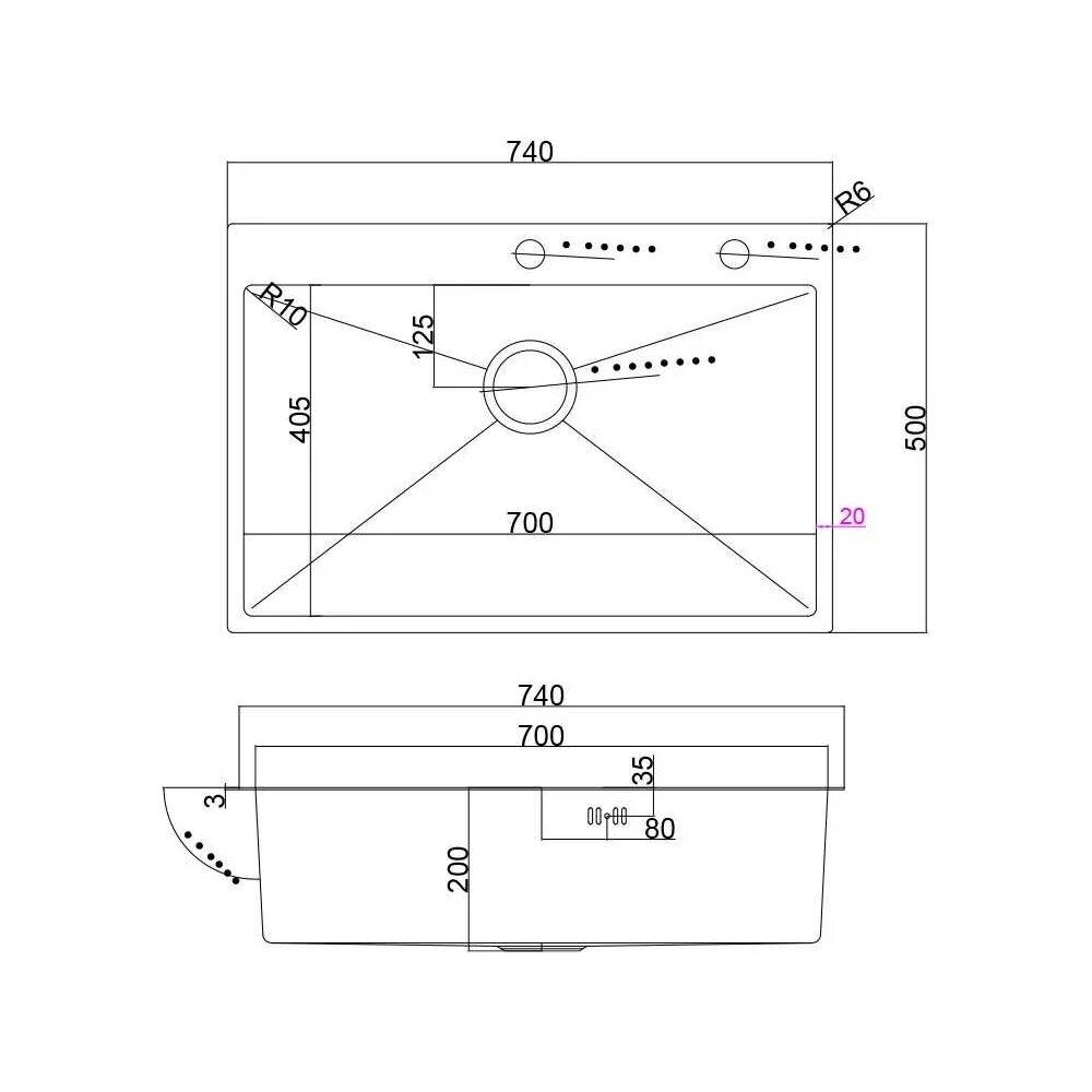 Мойка для кухни из нержавеющей стали врезная 75x45 см черная