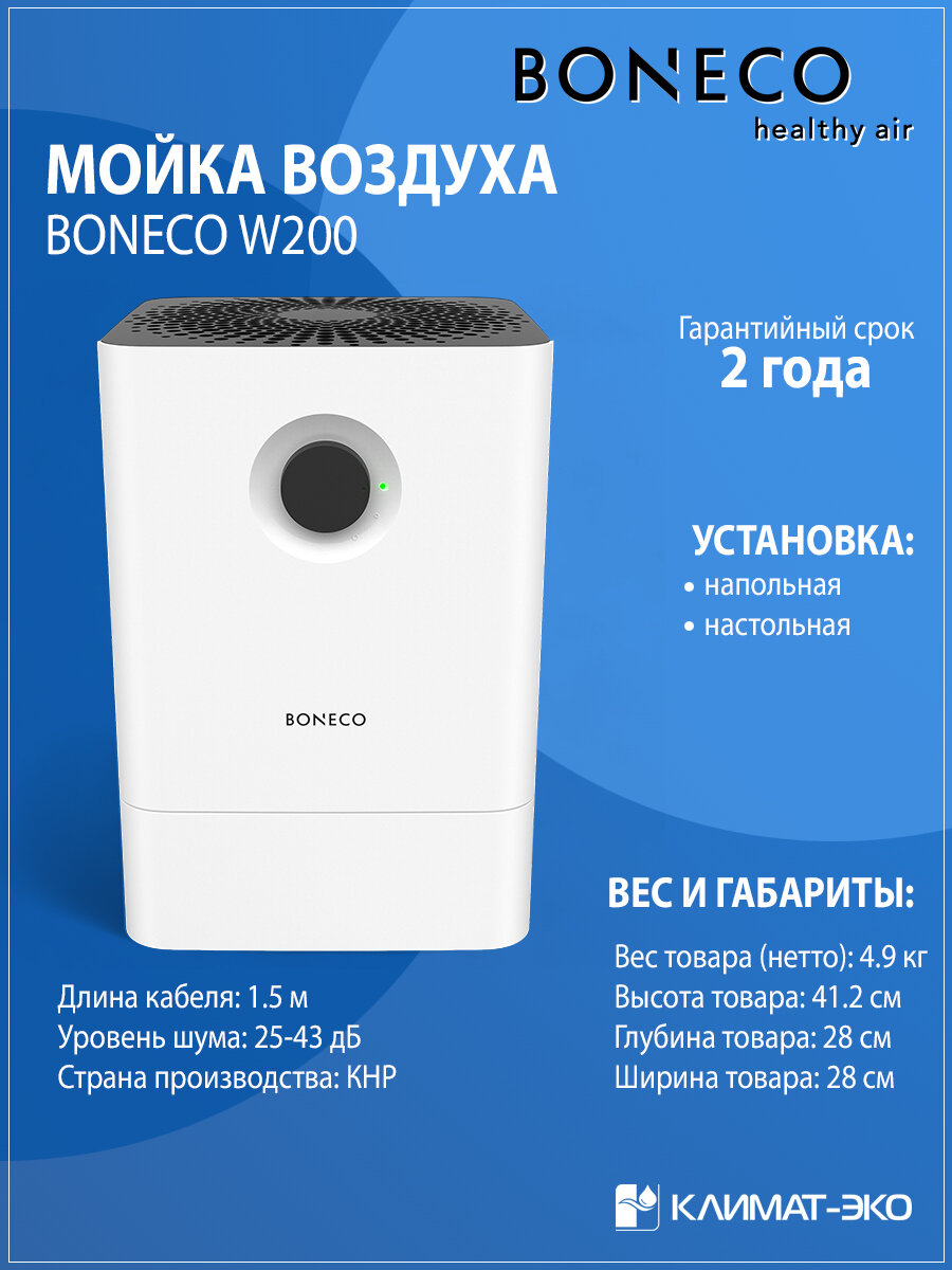 W200 — новая эра увлажнения и очищения воздуха с помощью запатентованной 3D-губки. Все самое необходимое: современная система очистки воздуха, 2 режима работы, высокая производительность и ручное управление. Свежий воздух с помощью одной кнопки, в прямом смысле слова. Прибор идеально вписывается в интерьер: плавные, но строгие линии, идеальная текстура пластика и графический орнамент, созданный из отверстий воздухозабора на верхней крышке. W200 — передовые технологии в создании правильного домашнего микроклимата.