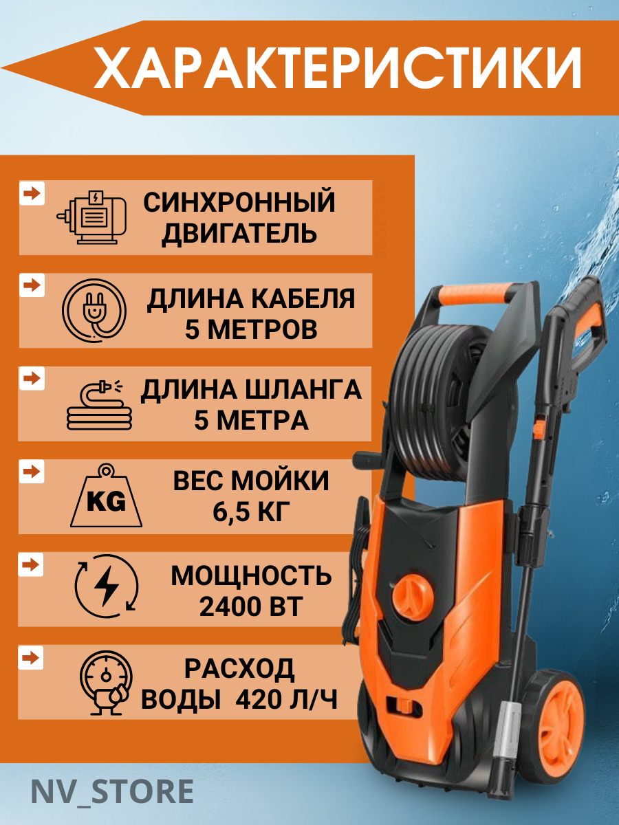 Мойка высокого давления, 2400Вт, с пеногенератором, защита от перегрева, 160 бар, 7кг: сравнение цен, характеристики, фото, актуальное наличие и цены.