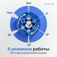 | Подробная комплектация | 1. Мойка высокого давления BAUS AquaPulse 2. Насадка распылитель 3. Носик распылителя 4. Переходний для водопроводной трубы - x2 5. Пульверизатор для автомобильного шампуня 6. Погружной фильтр тонкой очистки воды 7. Шланг подачи воды 8. Аккумулятор - x2 9. Блок питания аккумулятора 10. Кейс для хранения и переноски 11. Руководство пользователя |