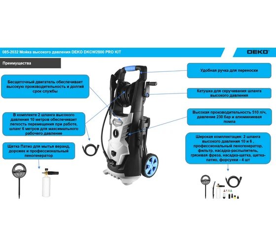 Купить Мойка высокого давления (бесщеточная) DEKO DKCW2800 PRO KIT 085-2032 с доставкой по всей России. Мойка высокого давления (бесщеточная) DEKO DKCW2800 PRO KIT 085-2032: сравнение цен, характеристики, фото, актуальное наличие и цены.