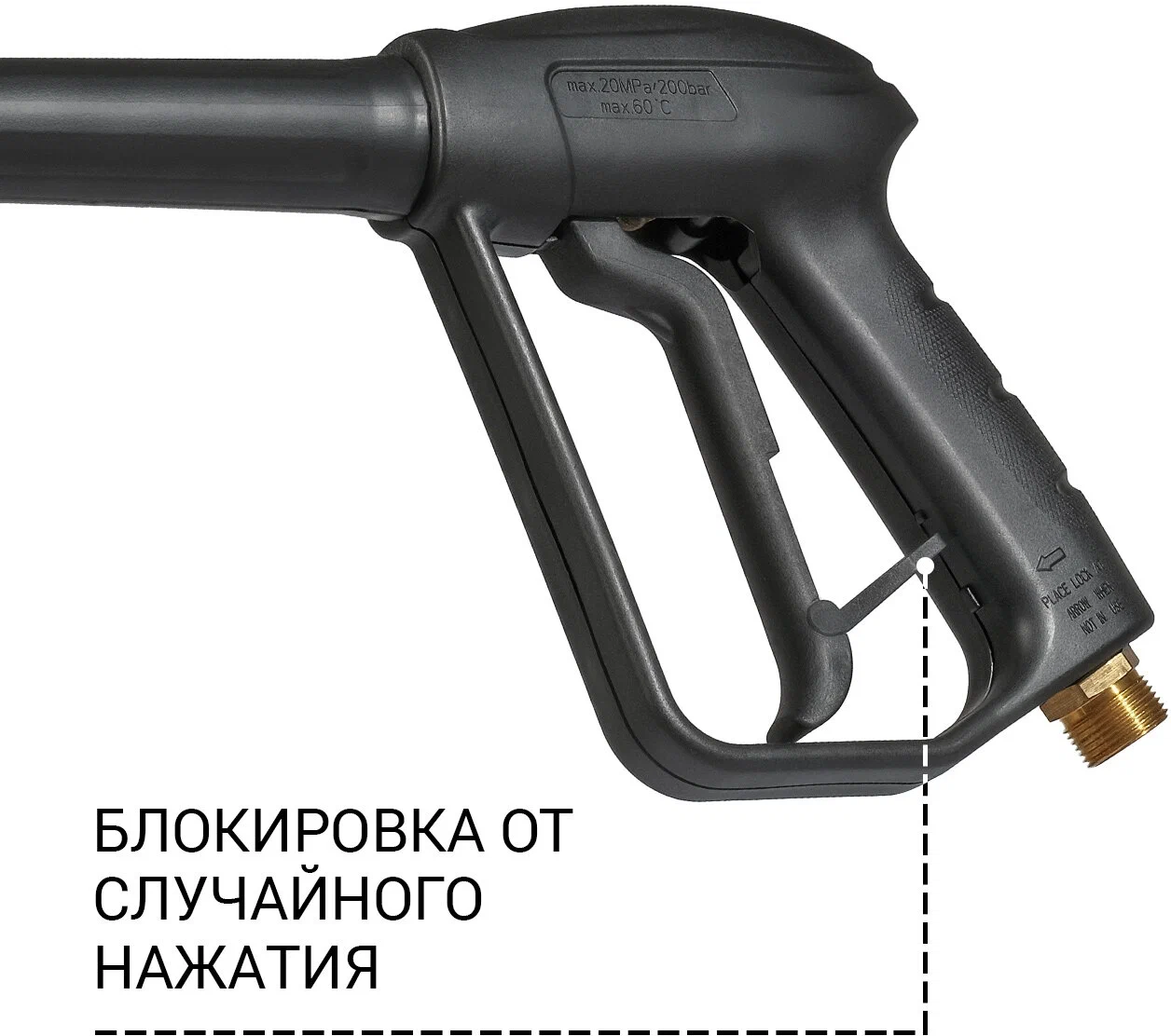 автоматическое отключение, защита двигателя от перегрева, защита шланга от скручивания, отключение при недостатке воды, предохранительный клапан