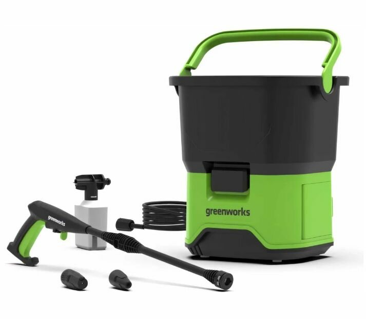 Мойка высокого давления GREENWORKS аккумуляторная 40V, (без АКБ и ЗУ, 70бар, 300л/ч, открытая емкость для воды, шланг 6м): сравнение цен, характеристики, фото, актуальное наличие и цены.