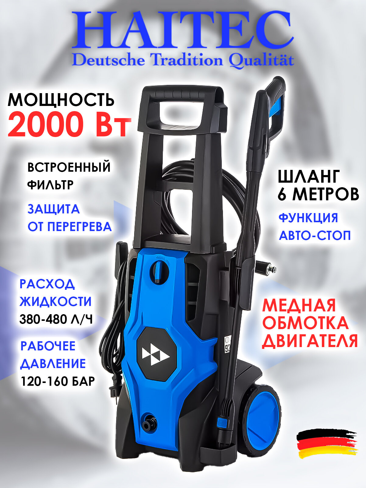 Мойка высокого давления HAITEC HT-HDR2000, 2000 Вт, алюминиевая помпа, длина шланга 8 м: сравнение цен, характеристики, фото, актуальное наличие и цены.