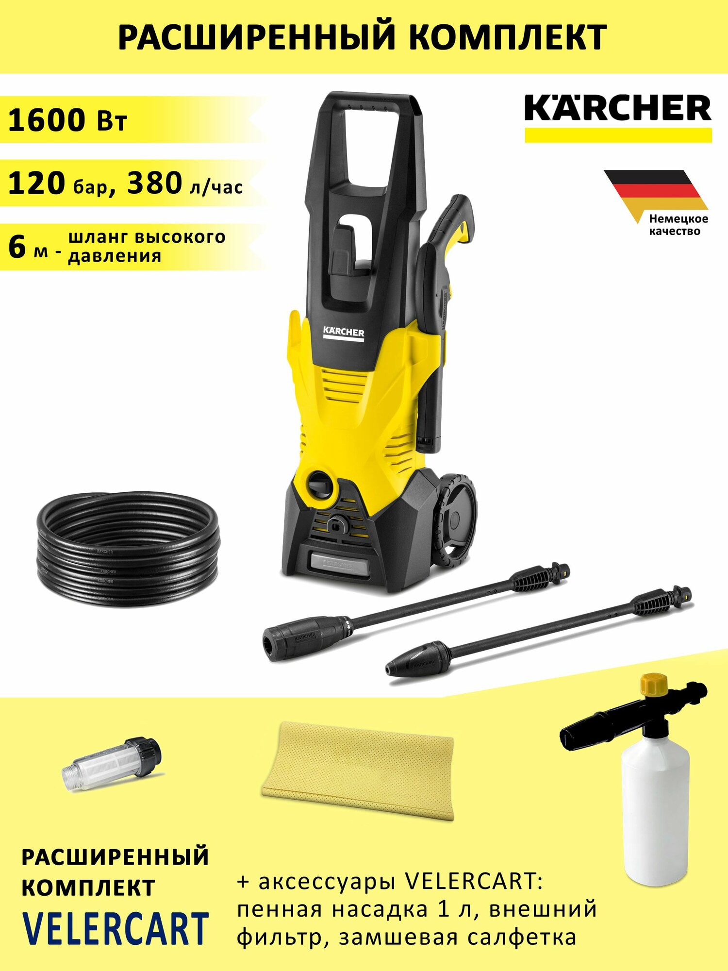 Аппарат высокого давления Karcher К 3 оснащен системой Quick Connect, что позволяет подсоединять 6-метровый шланг высокого давления одним движением. Грязевая фреза поможет справиться со стойкими загрязнениями, а струйная трубка Vario Power с регулировкой давления пригодится при мойке мотоциклов, садовой мебели и др. В мойке также предусмотрен интегрированный фильтр для очистки воды.