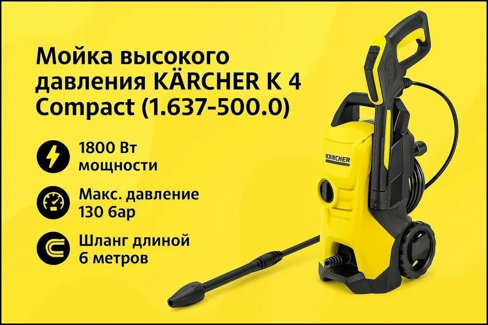 Мойка высокого давления KARCHER K 4 Compact (1.637-500.0): сравнение цен, характеристики, фото, актуальное наличие и цены.