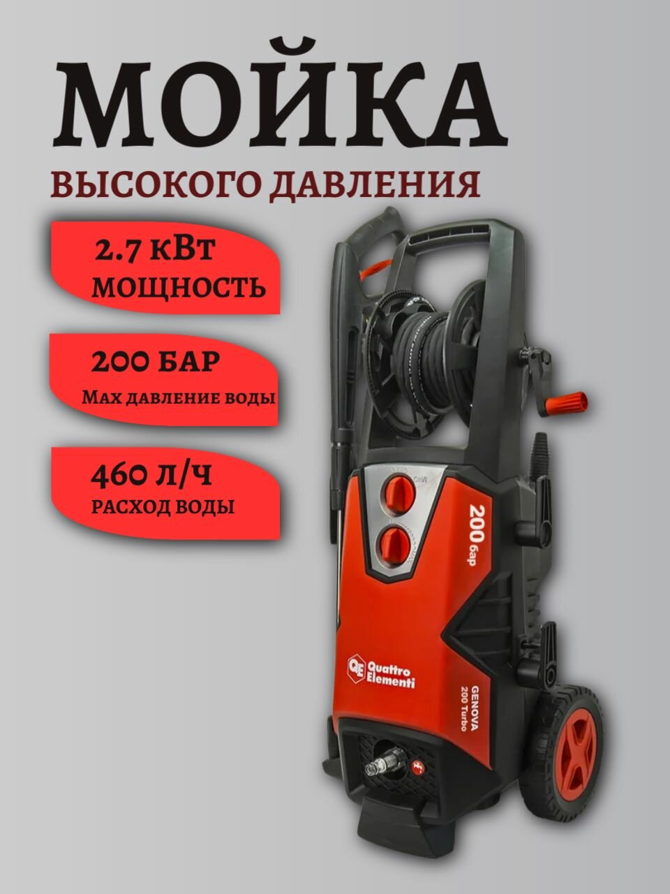 Мойка высокого давления QUATTRO ELEMENTI GENOVA 200 Turbo + ротационная насадка 912-129: сравнение цен, характеристики, фото, актуальное наличие и цены.