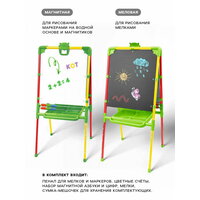 - 2 рабочие поверхности: для рисования мелом и сторона для рисования маркером и крепления магнитов;