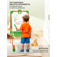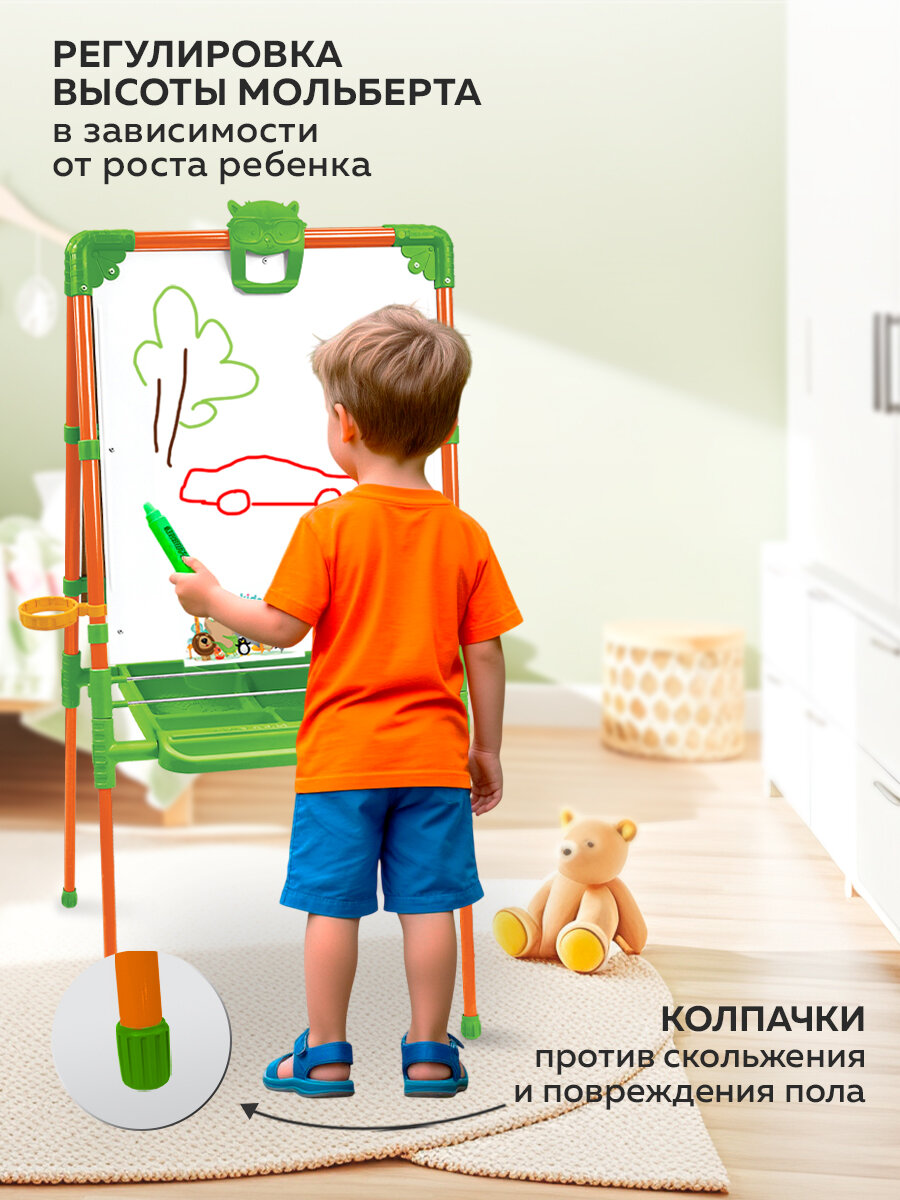 Артикул: 0629-887. Размеры: 7 x 51.6 x 104 см, Материал: Металл, Пластик, Вес: 7200 гр, В комплекте: Держатель, Вид: Двусторонний, Поверхность: Магнитно-маркерная, Вид доски: Магнитно-маркерная, Размер упаковки: 54 x 7 x 108 см, Вид установки: Напольный, Возраст: От 3 лет, Размер рабочей поверхности, см: 46 x 53, Группа роста: 3 (131-145 см), Цвет: Оранжевый, Из натурального дерева: Нет, Ширина, см: 54.5, Длина, см: 102. Высота: 1017 мм (в сложенном виде 1045 мм) Ширина: 530 мм Размер рабочей поверхности: 530х473 мм Двухсторонний мольберт с магнитной азбукой предназначен для детей от 1,5 лет. В его комплект входят доска для рисования маркером или мелом, вместительный пластиковый пенал для художественных инструментов, магнитный набор из русской азбуки, цифр, знаков препинания. С таким ярко-розовым или голубым детским мольбертом легко создать творческую обстановку даже в домашних условиях, а также превратить обучение грамоте в увлекательную игру. Так на магнитной стороне можно составлять слова и предложения, считать, решать примеры, рисовать маркерами на водной основе, а на меловой — писать и рисовать мелом. Этот многофункциональный мольберт будет особенно актуален для детей юного возраста, когда желание разукрасить все вокруг у них предельно велико. А потому купить такой мольберт — это не только сделать приятное своему ребенку, но и уберечь обои, двери и мебель от его ценных (на предназначенных для этого поверхностях) картин. Доска для рисования маркером может легко переквалифицироваться в доску для рисования красками — стоит просто закрепить на ней лист необходимым количеством магнитов. Размер букв: 0,6 x 3 x 3,3 см .