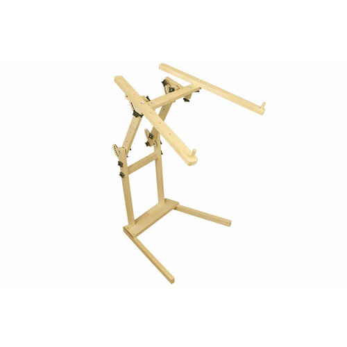 Напольный мольберт для вышивания "Любозар" имеет две ноги-опоры, которые придают ему устойчивость, а сгибаемые механизмы на ногах-стойках дают возможность отрегулировать рабочую поверхность по высоте и глубине, а так же по наклону.